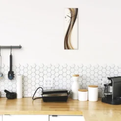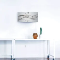 ARTland Holz Wanduhr Funkuhr – Schwarzer Zeiger Dampfender Cappuccino Und Croissant Größe: 40×30 Cm
