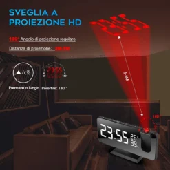 Projektionswecker, Led Digital Wecker Mit Projektion 180 °, Radiowecker Mit USB-Anschluss Großem LED-Anzeige Snooze Dual-Alarm, 4 Projektionshelligkeit Mit Automatischem Dimmer, 32FM Radio
