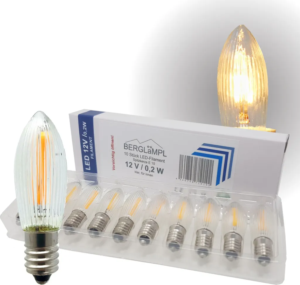 10 Stk. LED Filament 12V/0,2W E10 Ersatz-Lämpchen Für Lichtbögen Mit 20 Brennstellen