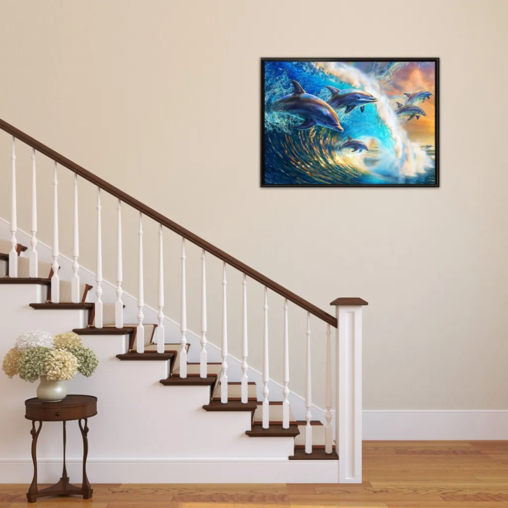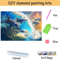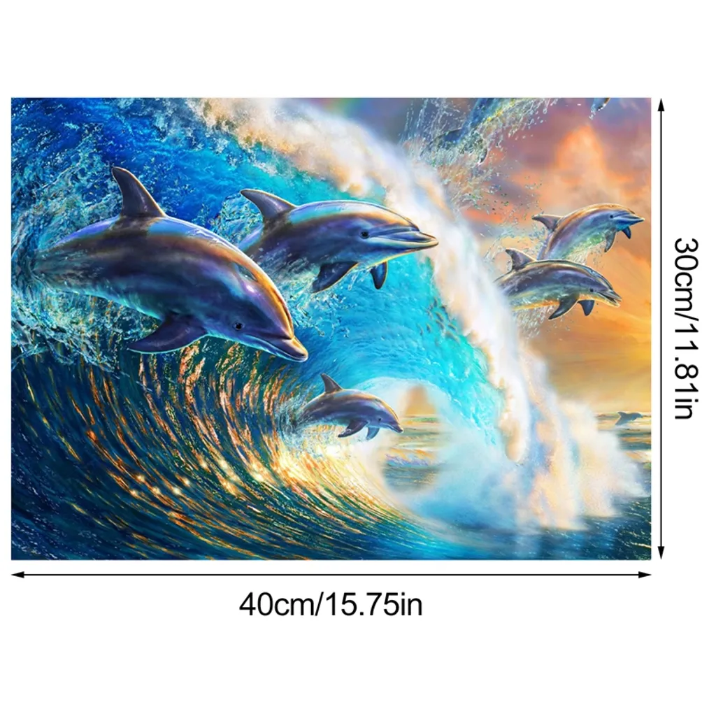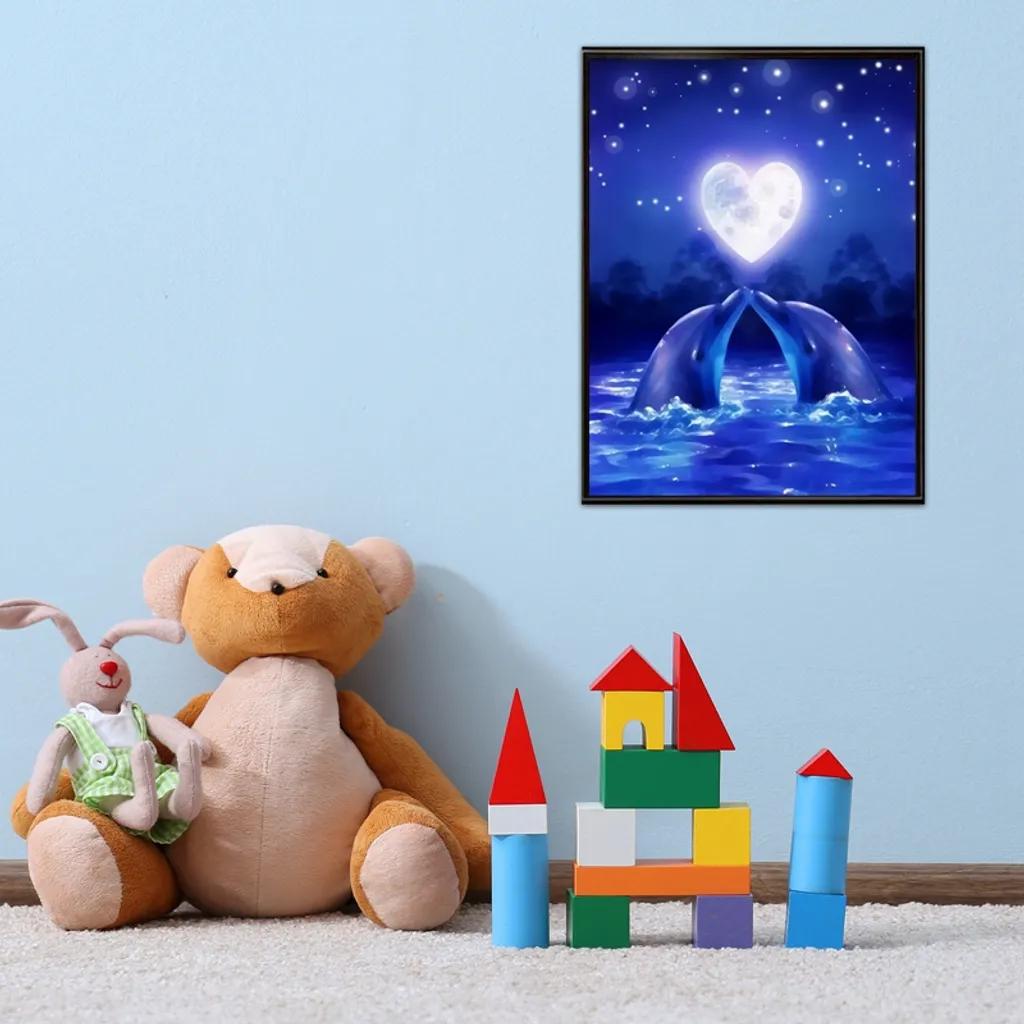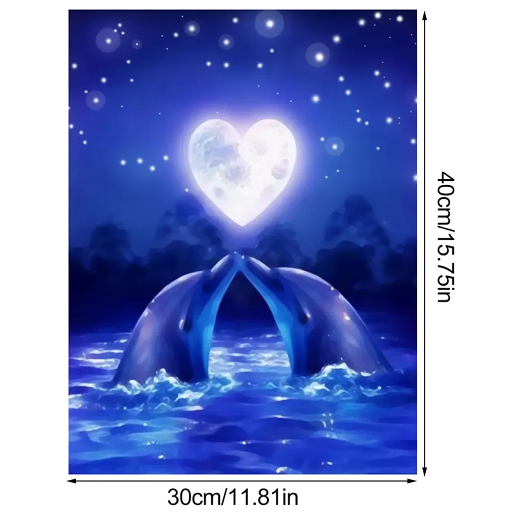 2 Pcs 5D Diamond Painting Diamant Malerei Painting Bilder, Blau Delphin Kuss Meer Mond Tiere Full Set Groß DIY Diamant Gemälde Malen Nach Zahlen 40X30Cm