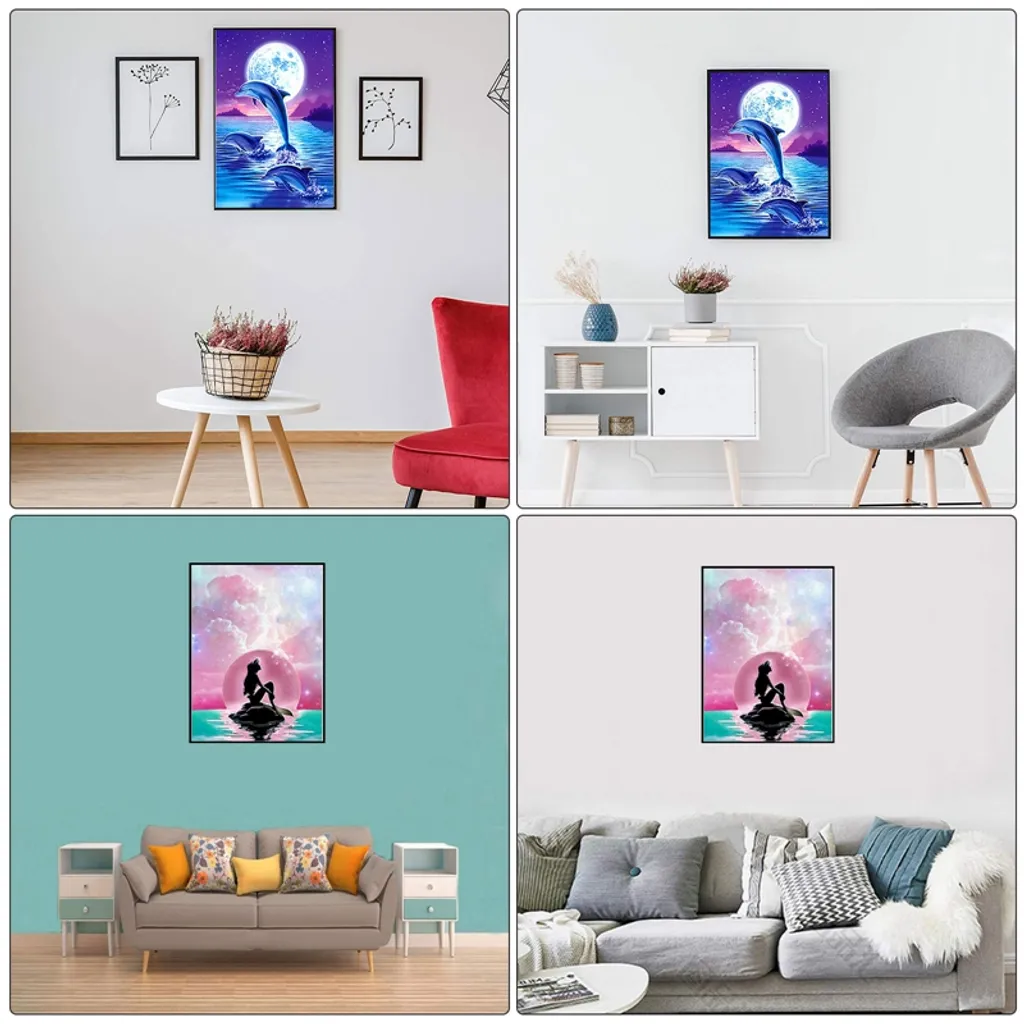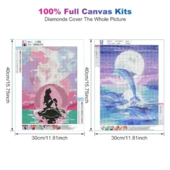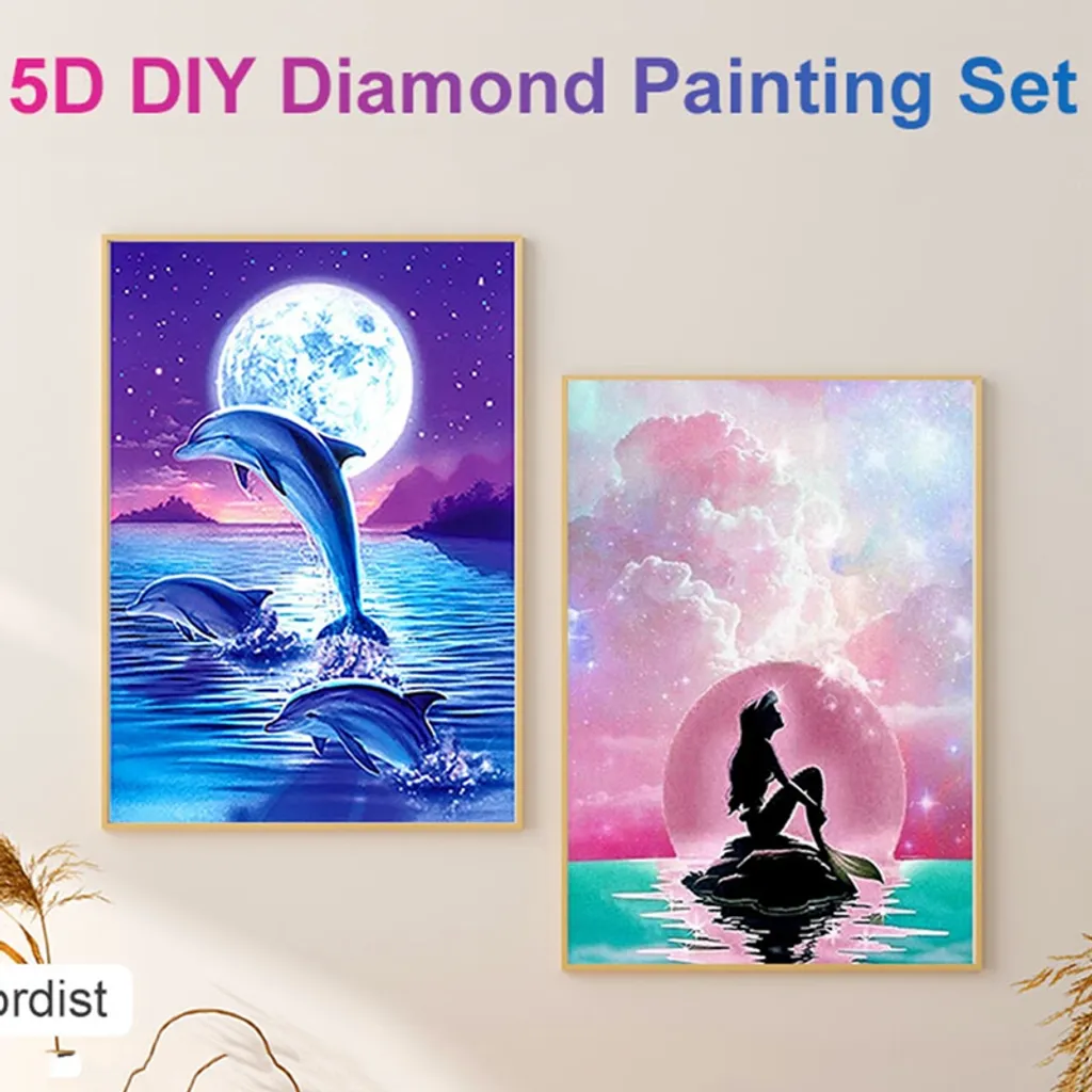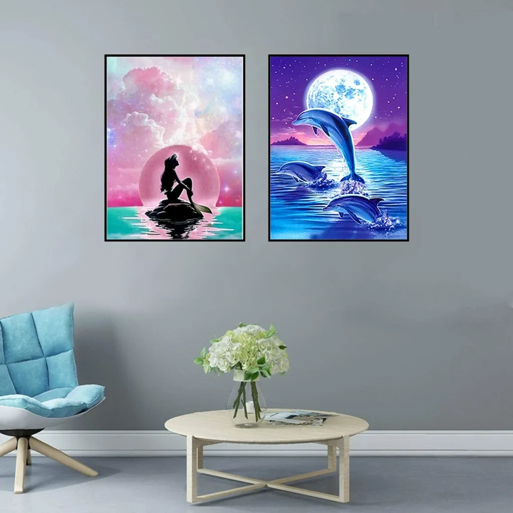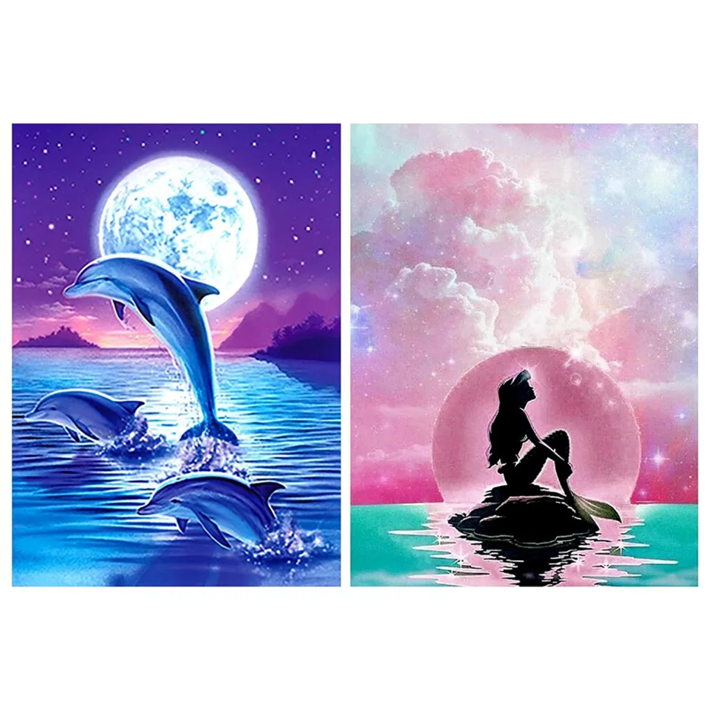 2 StĂŒck 5D DIY Diamond Painting Full Diamant Kreuzstich Stickerei Malerei Meerjungfrau + Delphin Bilder Deko 30*40cm