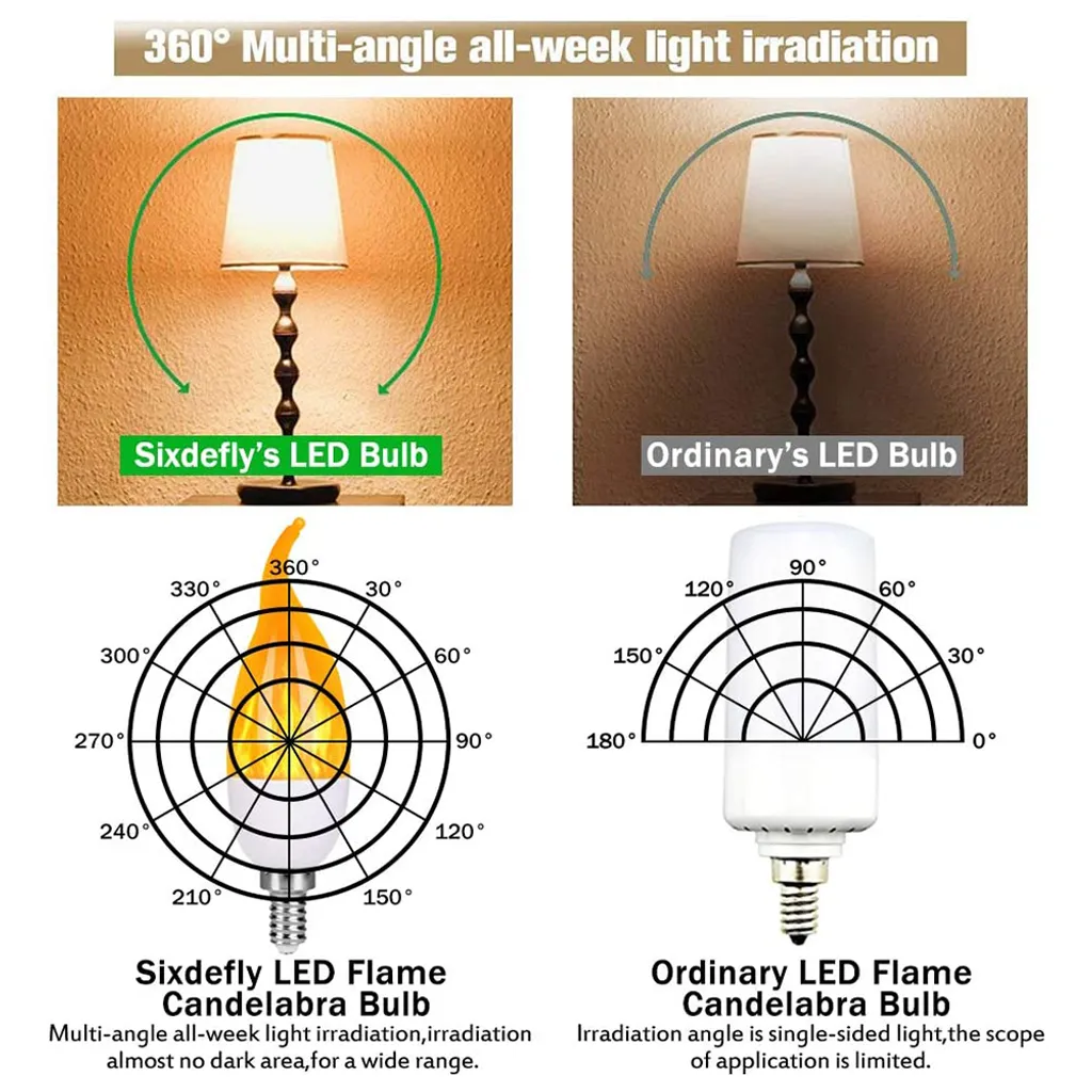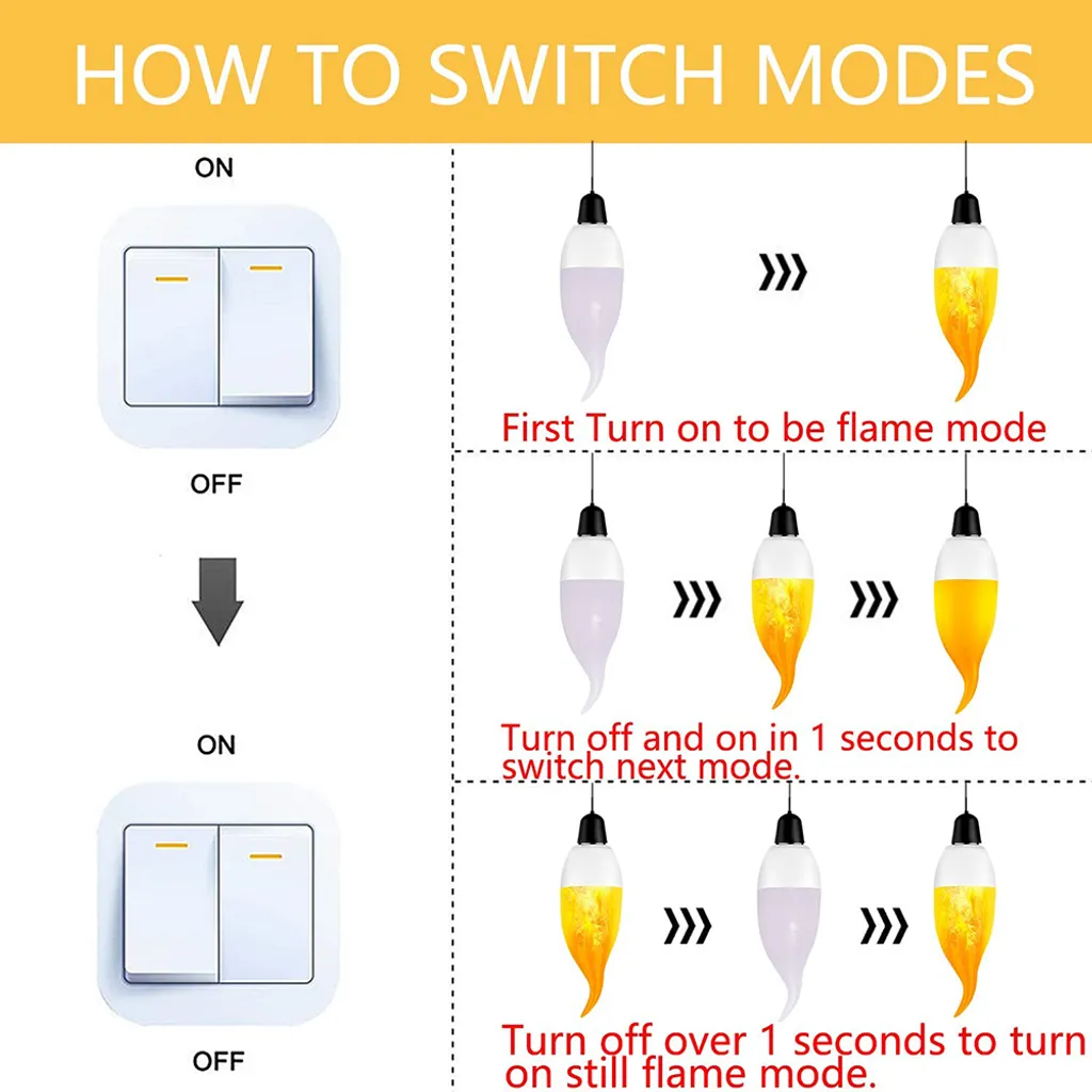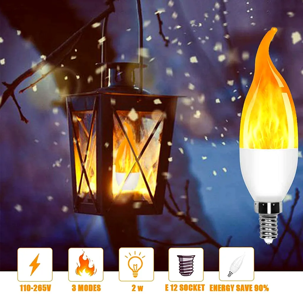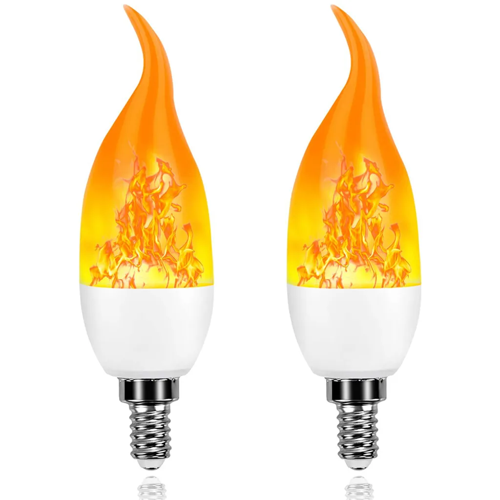 2 Stück E14 LED Flammen Flacker Glühbirne Flammenlicht Kerzenlampe 3 Beleuchtungsmodi Atmosphäre Deko