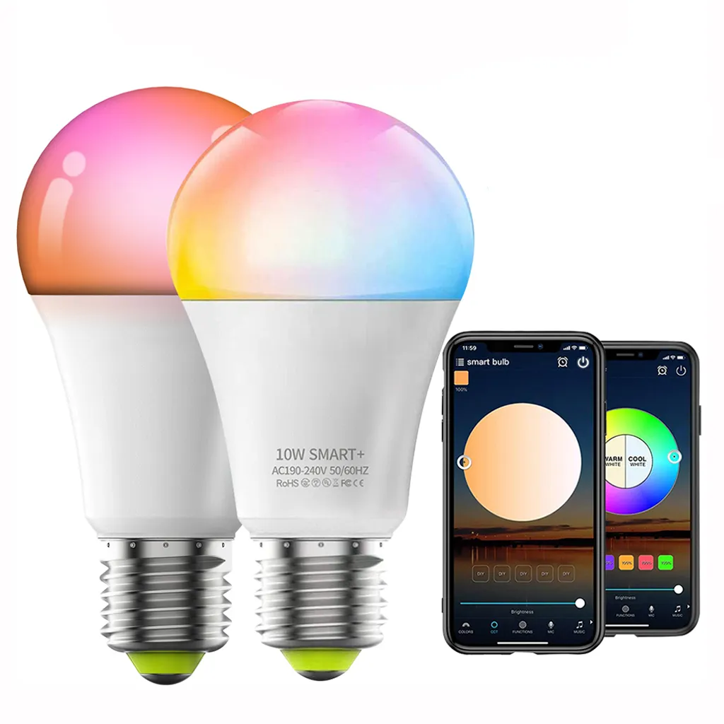 2 Stück E27 Smart WLAN LED Glühbirne Dimmbar RGB Weiß Licht Leuchtmittel Birne Kompatibel Mit Alexa Und Google Home
