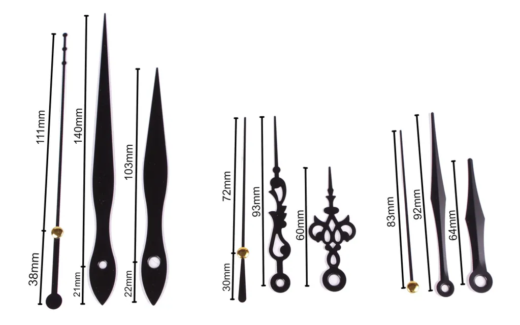 3 Zeigersätze Zeiger Set Uhrzeiger Satz Alu Schwarz Für Uhrwerk Wanduhr