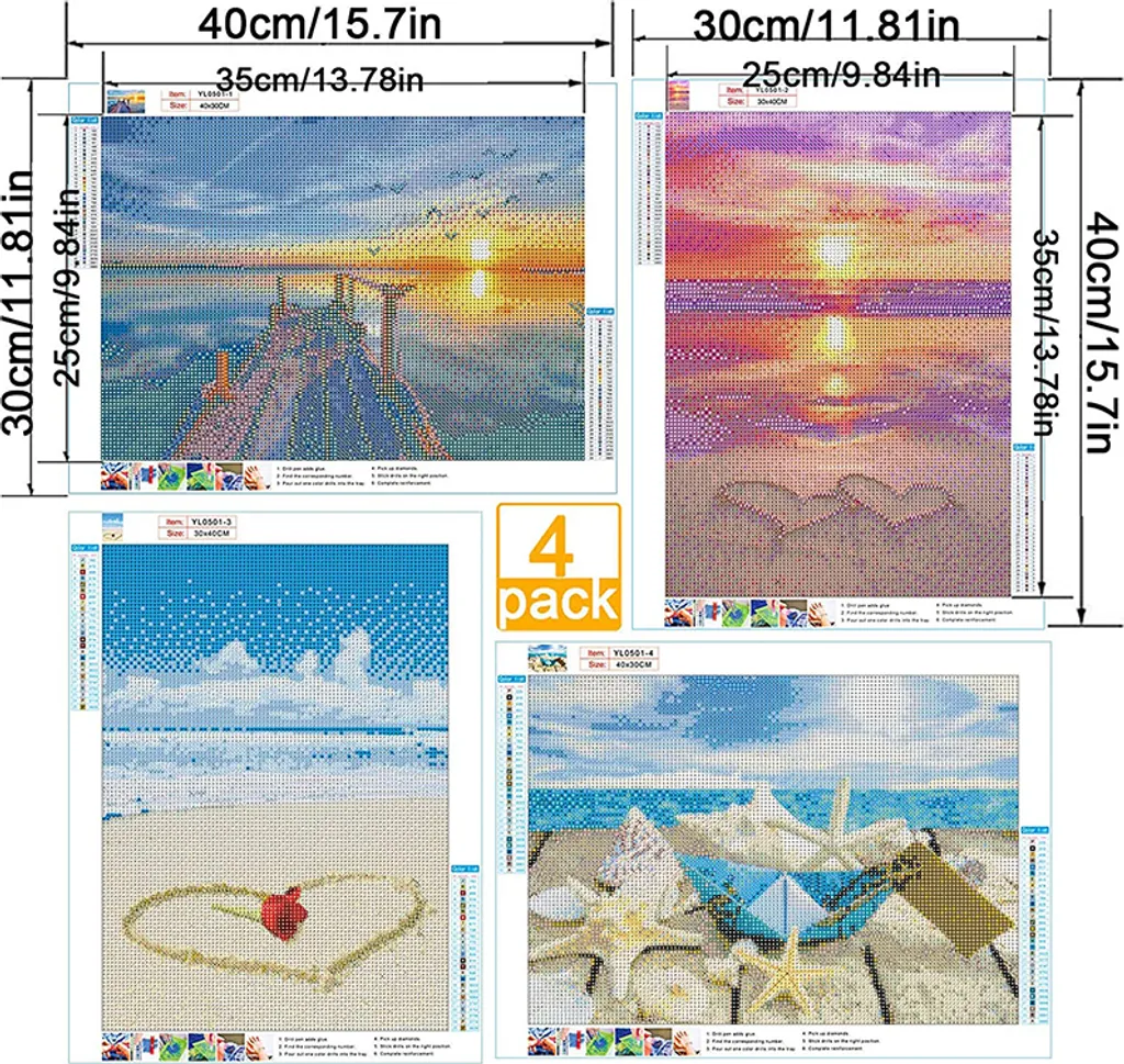 4 Packung 5D Diamant Painting Full Drill Set,DIY Diamond Painting Strand Kreuz Stich Diamond Dekoration