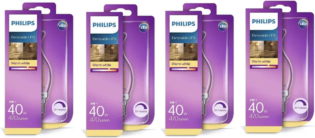 4 X Philips LED Kerze Klar Vintage 5W=40W E14 A+ 470lm 2700K WarmWhite Dimmbar