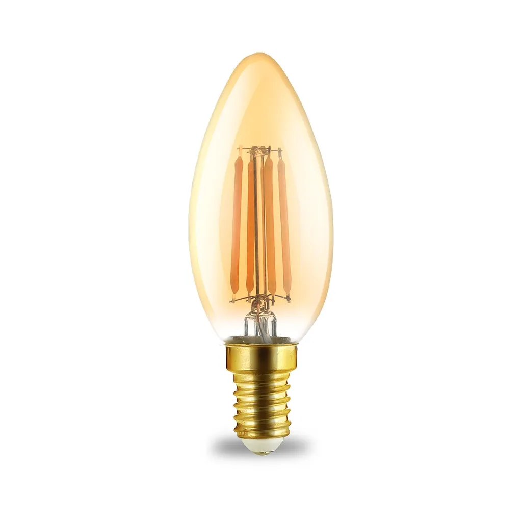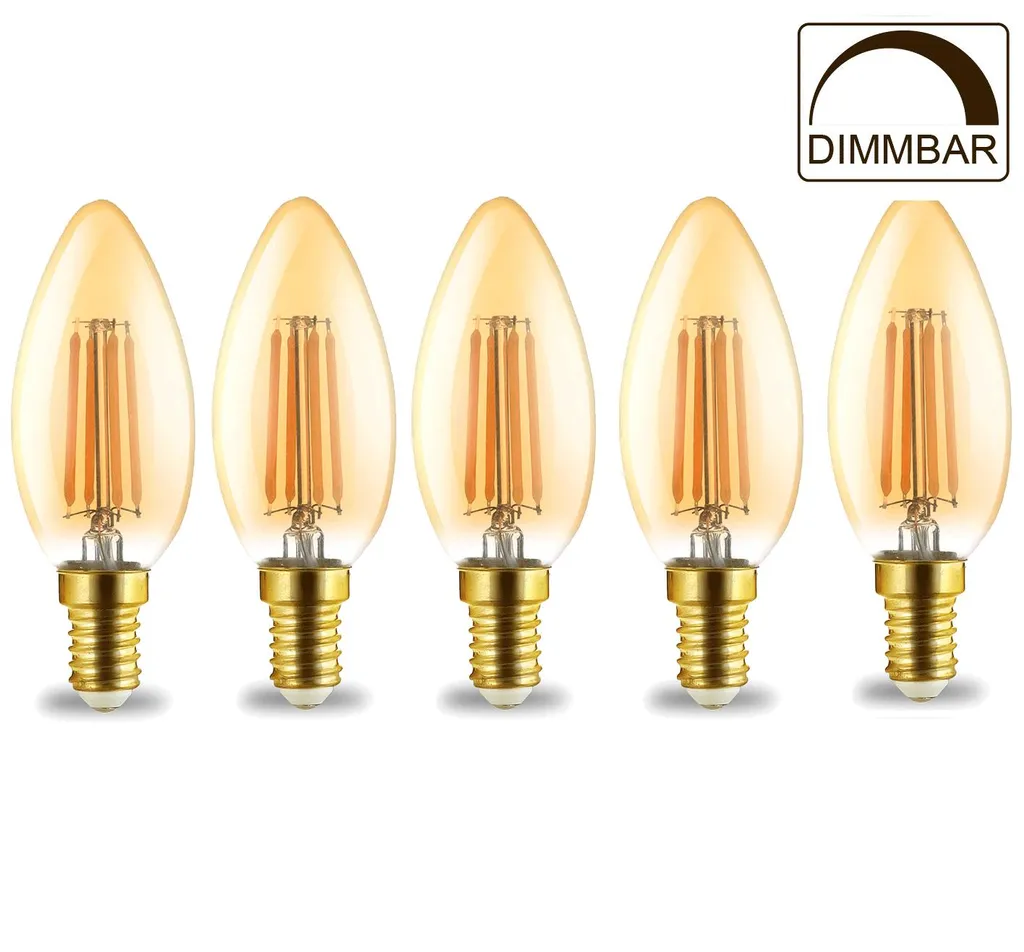 5x LED Leuchtmittel E14 Filament Kerze | Bernstein | C35 4W | Dimmbar | 360 Lumen Warmweiß (2200 K)