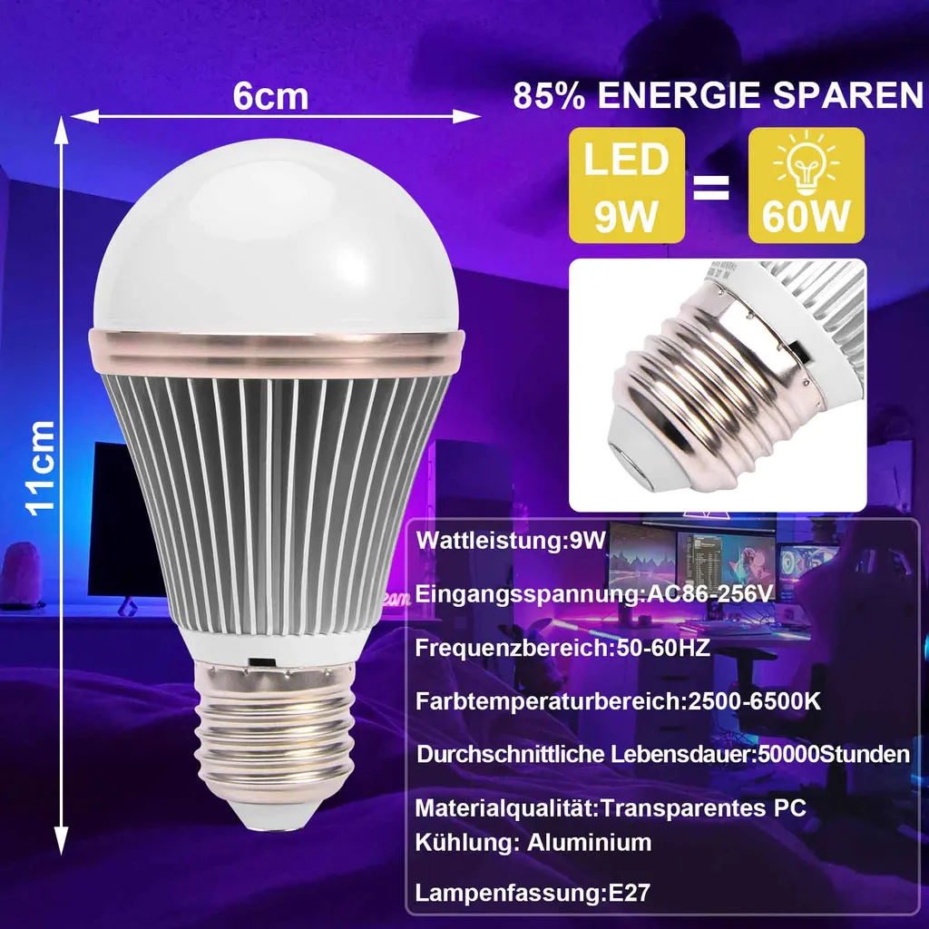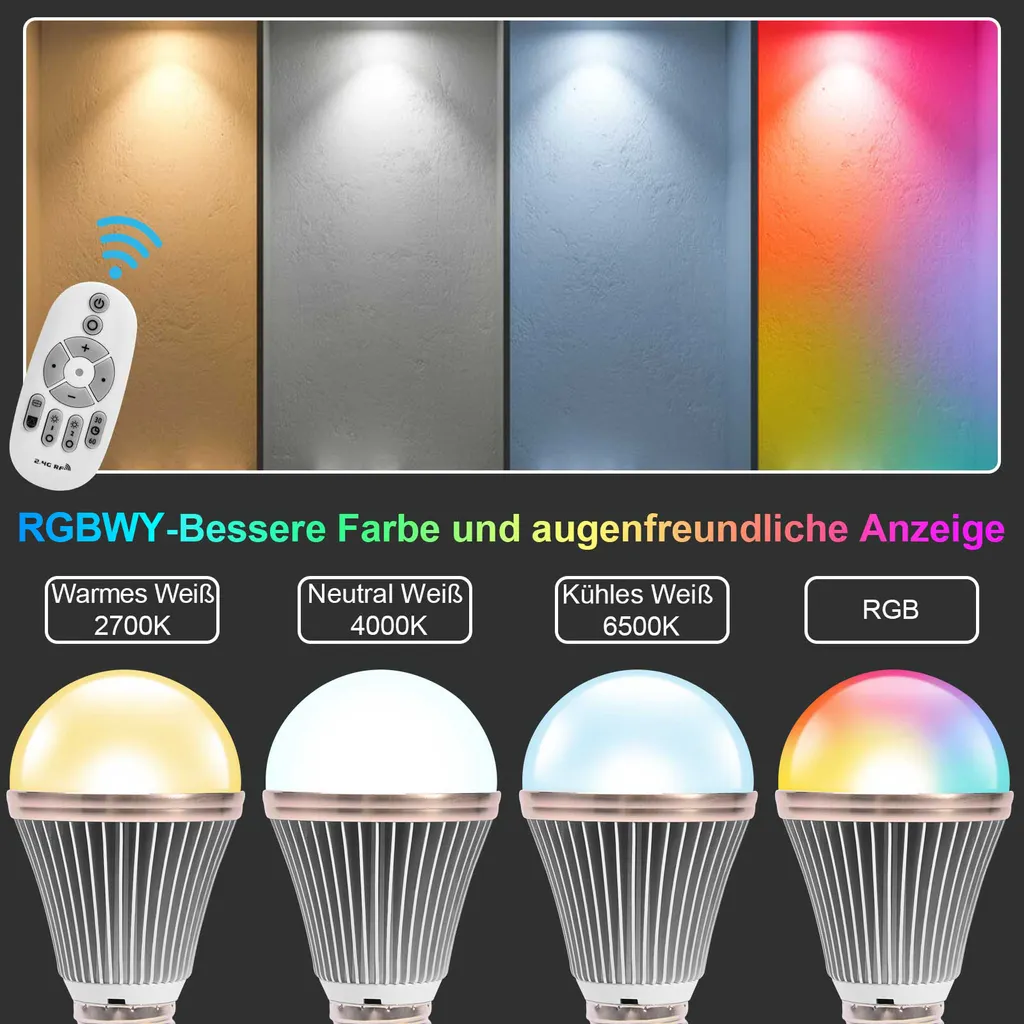 9W E27 LED Glühbirne RGBWY 2500K-6500K Dimmbar Birne Leuchtmittel Mit Fernbedienung Und Timer