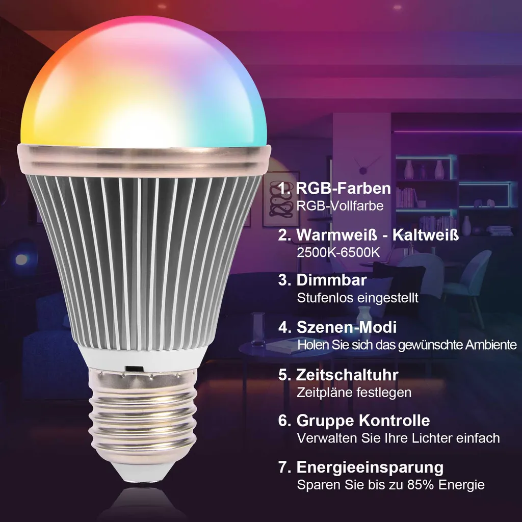 10W E27 Smart WLAN LED Glühbirne Dimmbar RGB Leuchtmittel Birne Kompatibel Mit Alexa Und Google Home