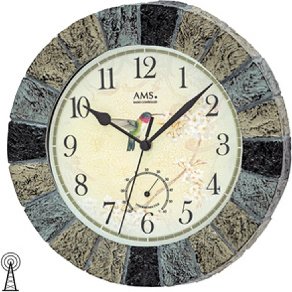 AMS 5979 Wanduhr Funk Funkwanduhr Analog Stein-Optik Mit Thermometer