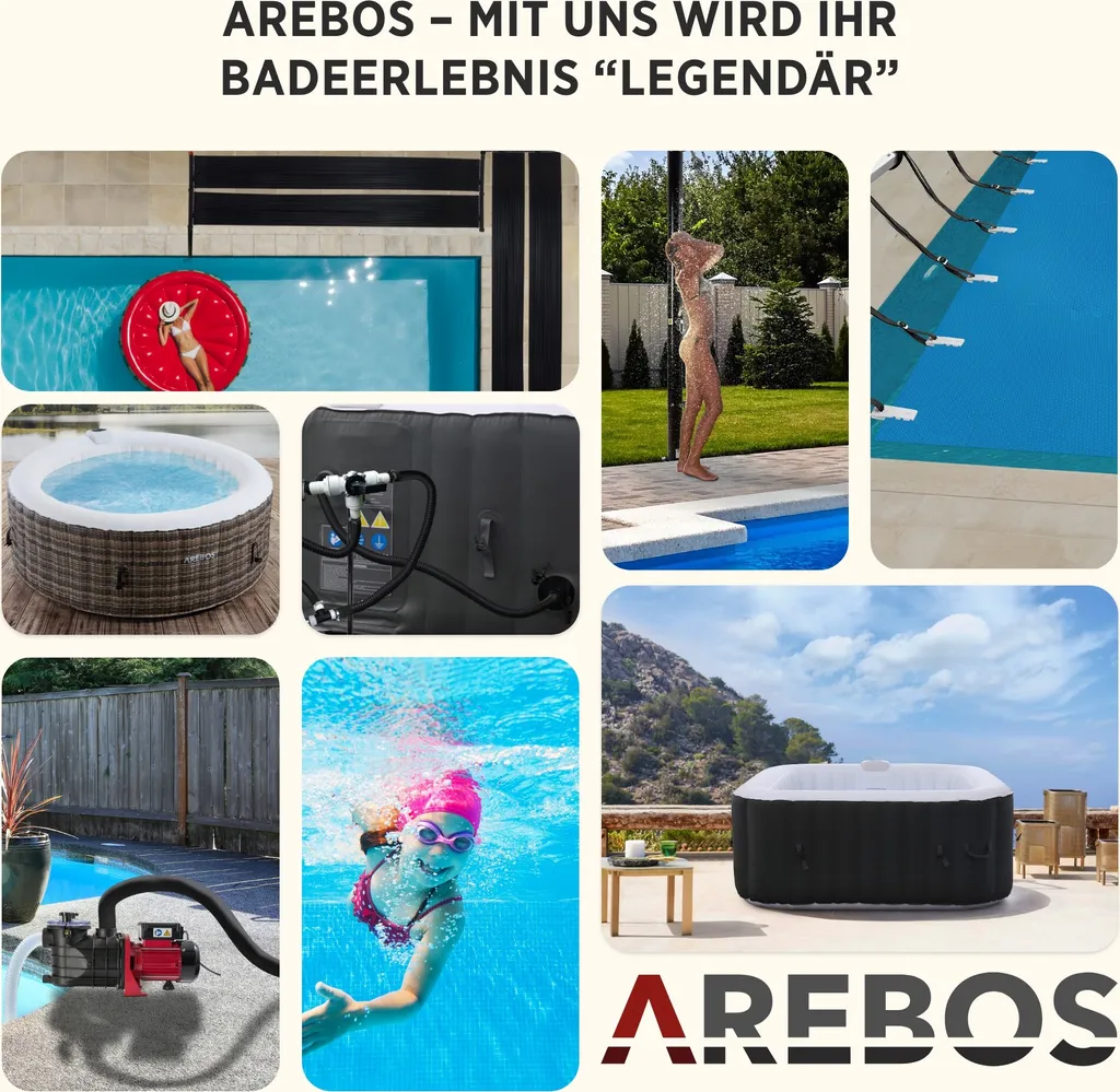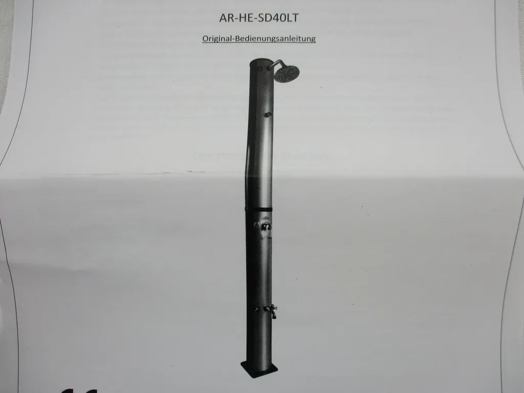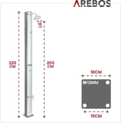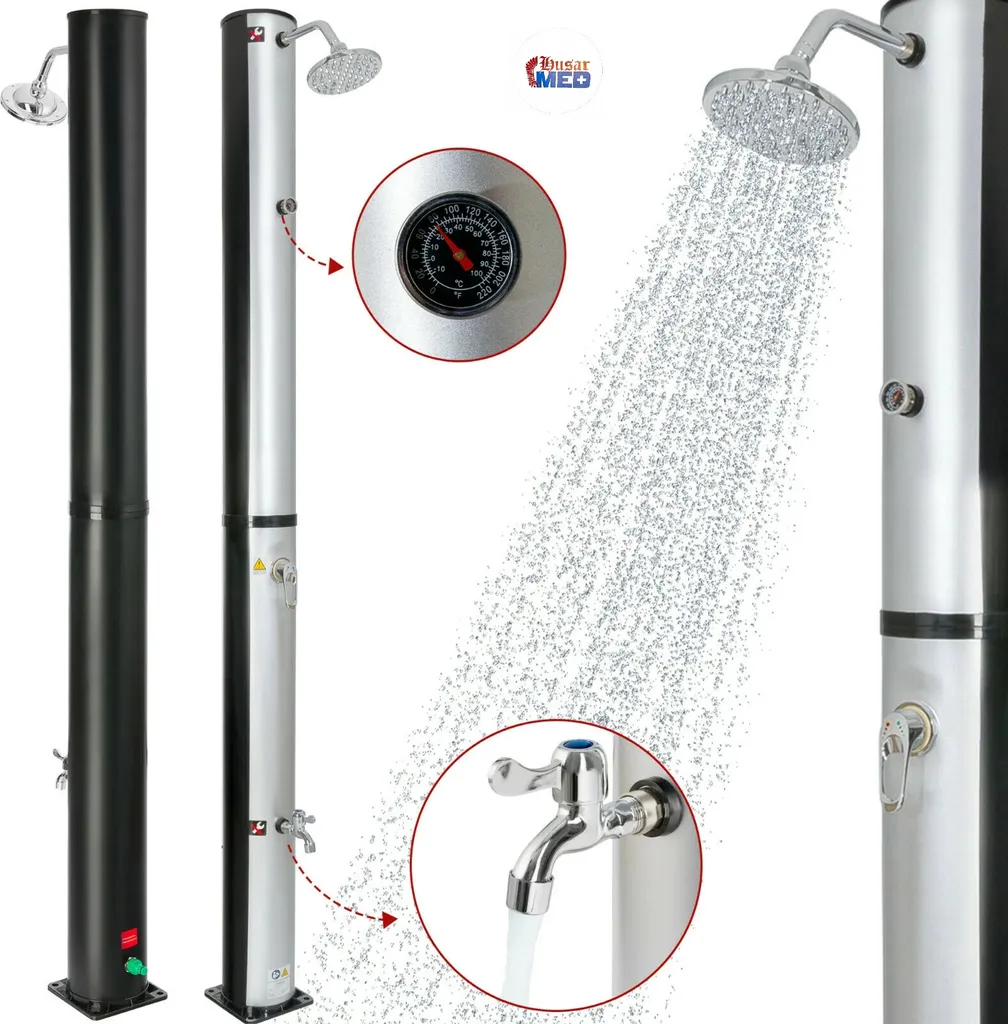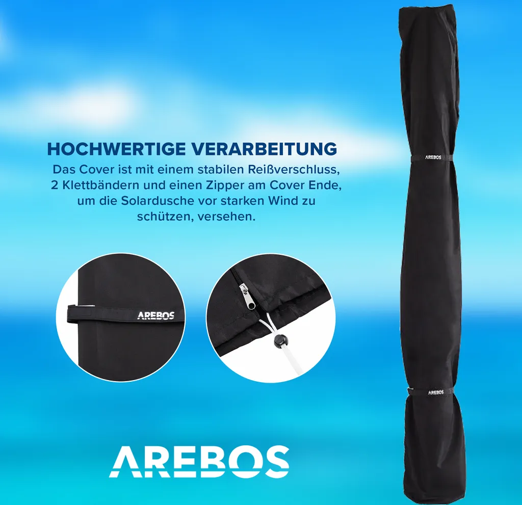 AREBOS Solardusche 40 Liter, Inklusive Abdeckhaube, Mit Integriertem Thermometer, Mit FuĂdusche, Mit Gartenschlauch-Anschluss, Silber-Schwarz