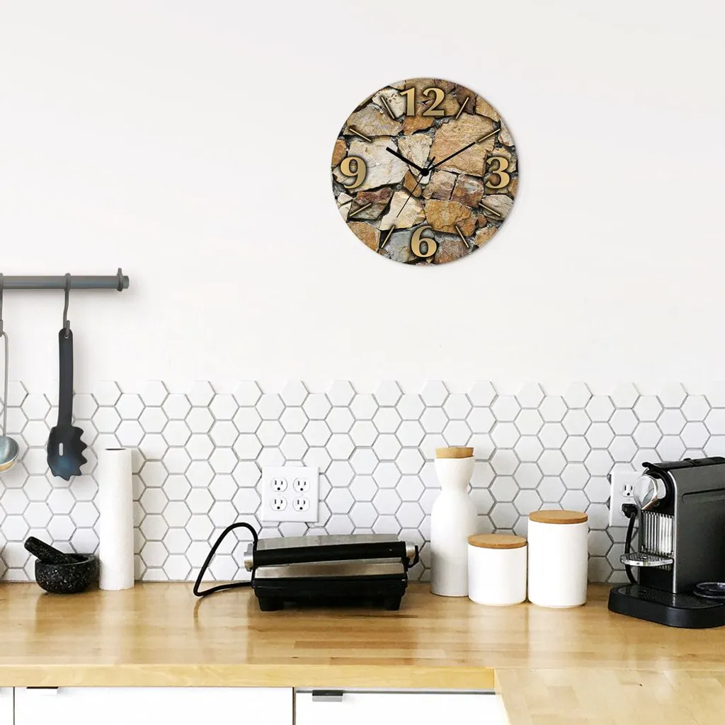ARTland Glas Wanduhr Quarzuhr – Schwarzer Zeiger Braune Steinwand Größe: 30×30 Cm