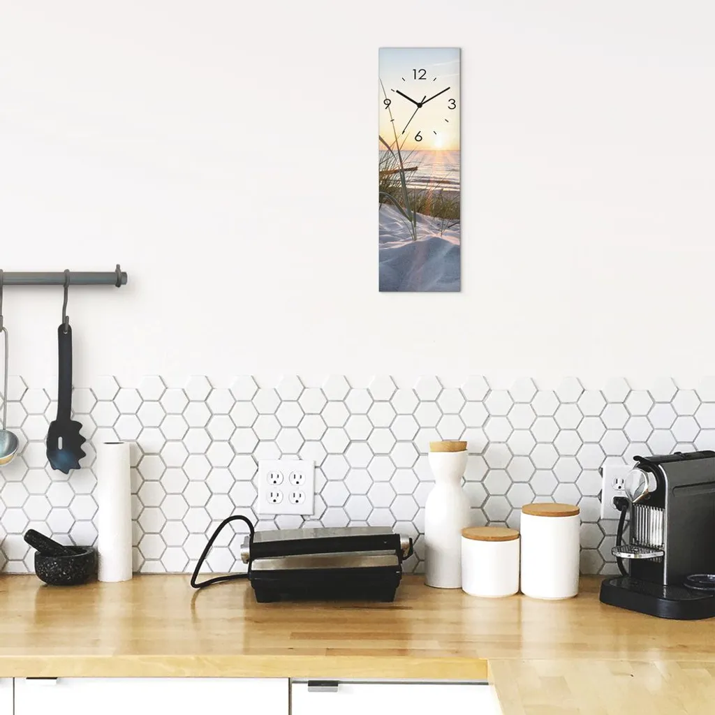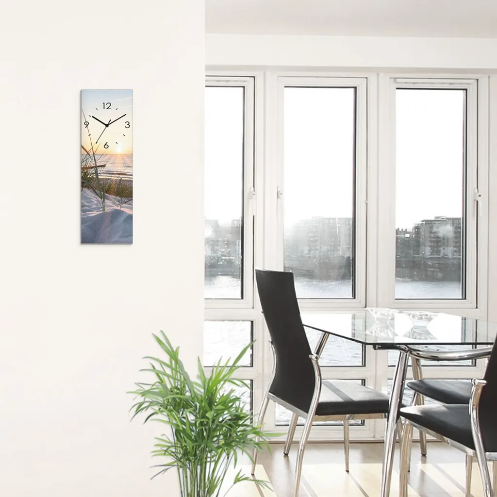 ARTland Glas Wanduhr Quarzuhr – Schwarzer Zeiger Ostseestrand Größe: 20×60 Cm