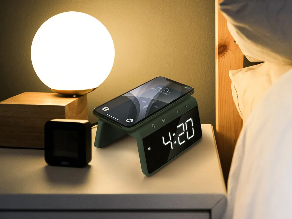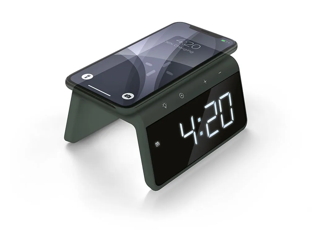 Caliber Digitaler Wecker Mit Drahtlosem Ladegerät – Dualer Wecker Mit Wecklicht – Mitternachtsgrün (HCG019QI-MG)