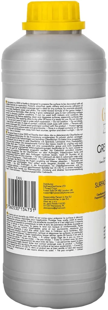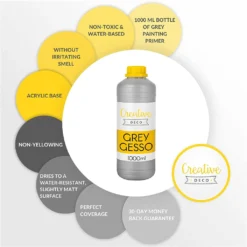 Creative Deco Professionell Graue Gesso | 1L | Perfekte Grundierung Für Malerei | Ideal Für Acryl-Farben, Öl-Farben, Pouring, Decoupage, Finnabair