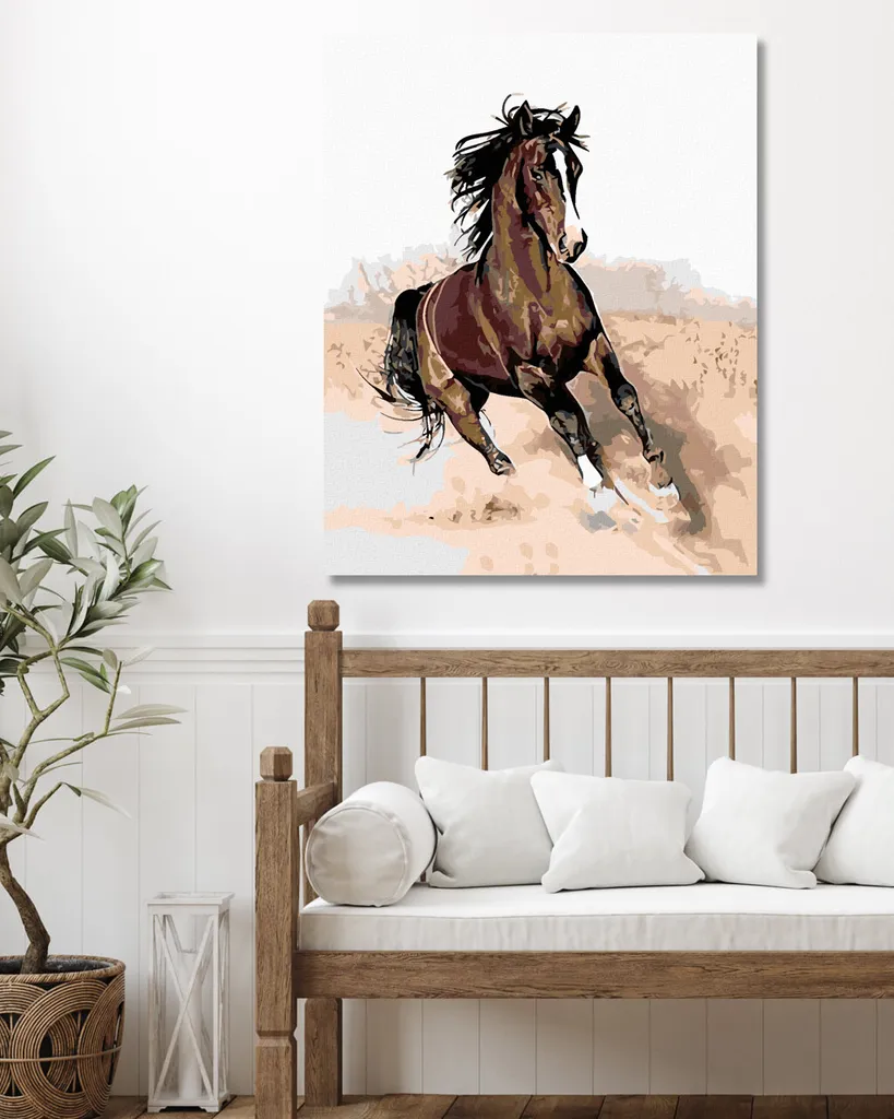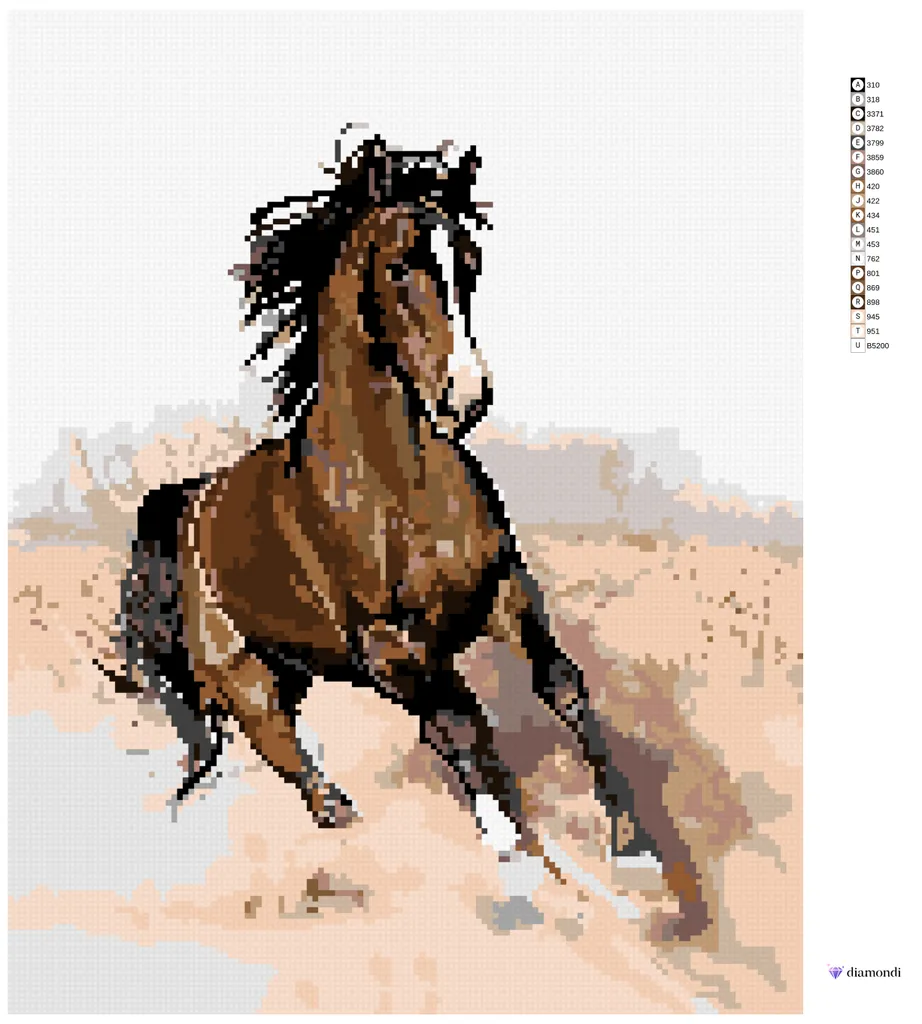 Diamondi – Diamond Painting – BRAUNES PFERD IM SAND, 40X50 Cm, Ohne Keilrahmen