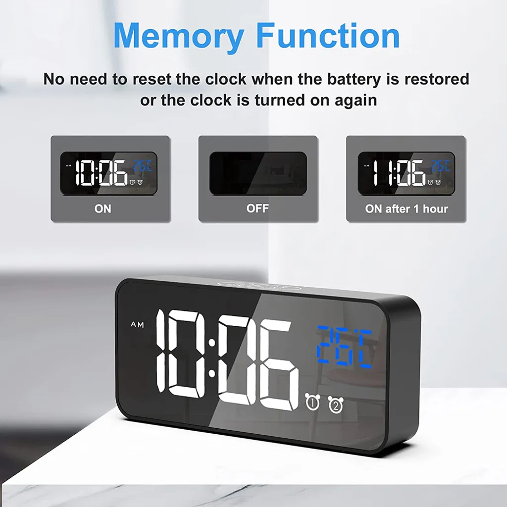 Digitale Uhr Großes Display Wecker Für Wohnzimmer Büro Schlafzimmer Dekor LED Elektronische Datum Temp Display Wand Elektrische Uhren Automatische Helligkeit Dimmer Smart Cool Modernes Schreibtischzubehör ,Black