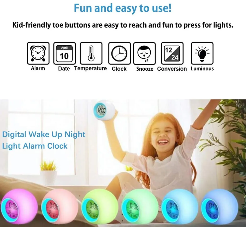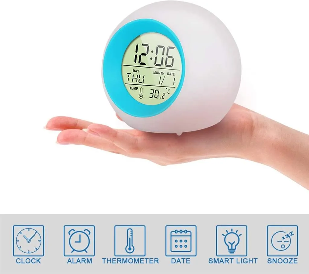 Digitaler Wecker Kinder, LED Kinderwecker 7 Farben Nachtlicht Lichtwecker Schlummerfunktion Für Mädchen Jungen