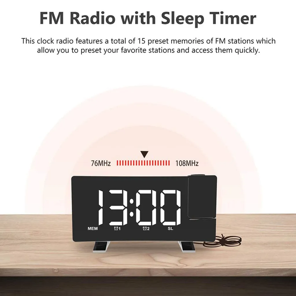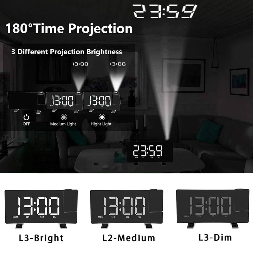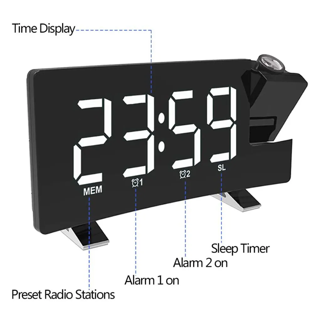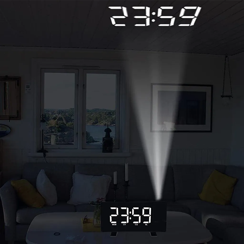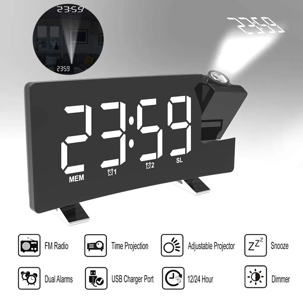 Digitaler Wecker, Projektionswecker Für Schlafzimmer Mit 4 Dimmern Und Klarer LED-roter Ziffer, USB-Telefonladegerät, 180° Drehbarer Projektor, Einfach Zu Bedienen, 12/24H, Schlummerfunktion, Digitale Uhr, Nur Mit Netzbetrieb Betrieben,Body Black+White Font