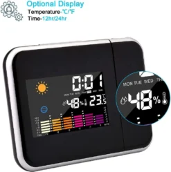 Drahtloser Projektionswecker Mit Powerwecker Innentemperatur Datum Schwarz 15,7 X 12 X 6,2 Cm