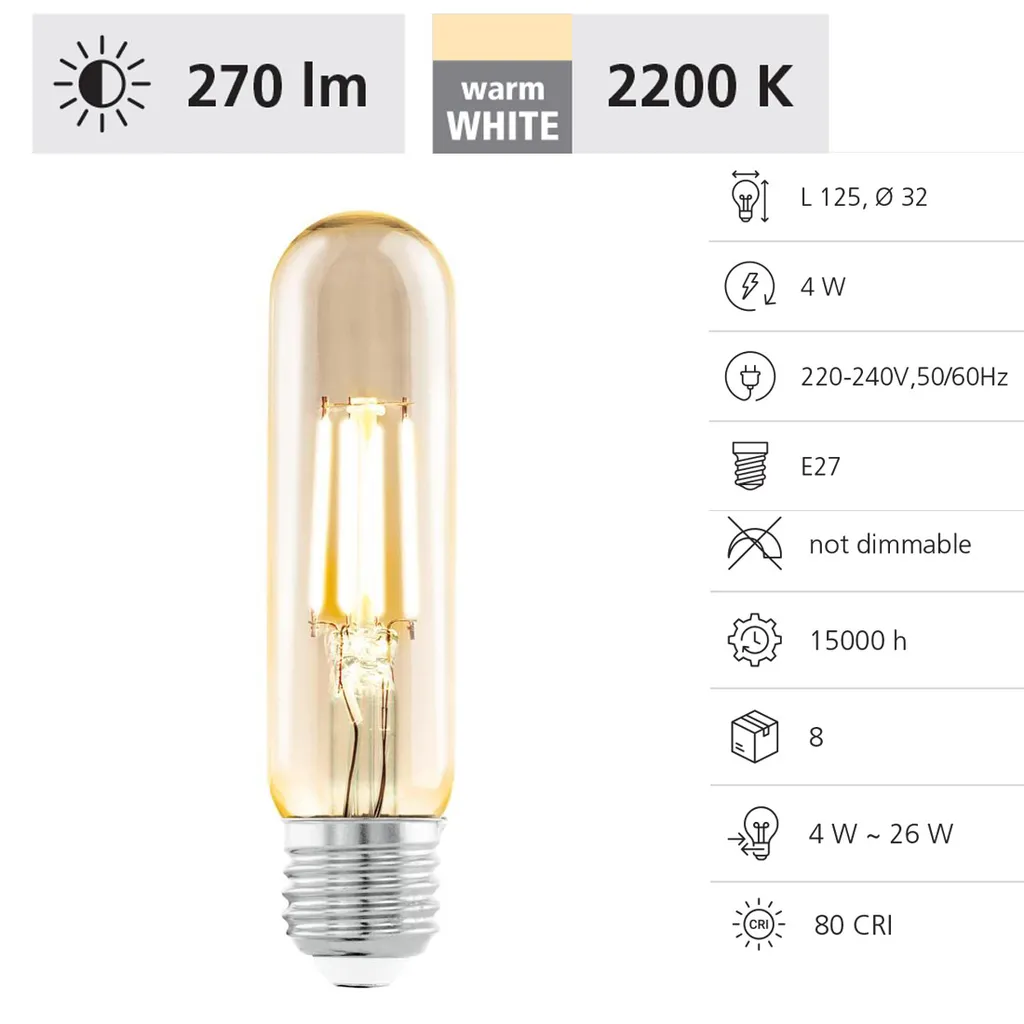 Eglo LED Leuchtmittel T32 E27 Stabform 4 W Warmweiß Amber