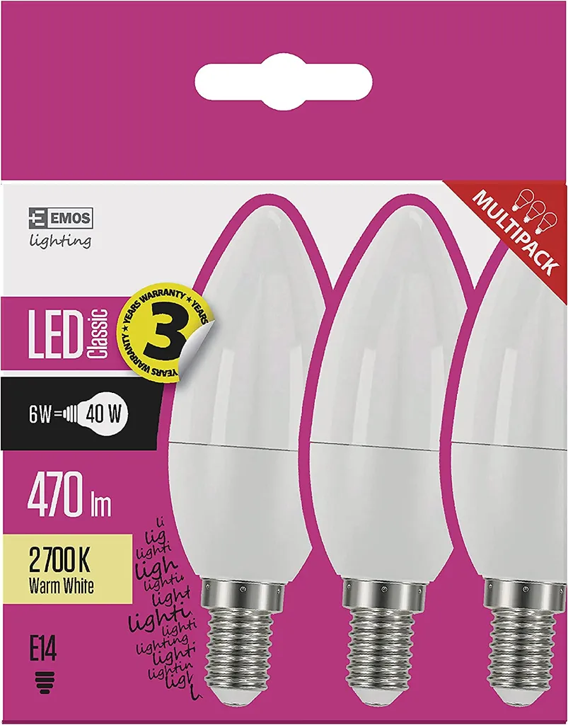 EMOS LED-Lampe Kerze 6W, Ersatz Für 40W Glühbirne, E14 Sockel, Helligkeit 470 Lm, Warmweiß 2700K, 30000 Stunden Leuchtdauer, CRI Min. 80, 250° Abstrahlwinkel, ZQ3220.3