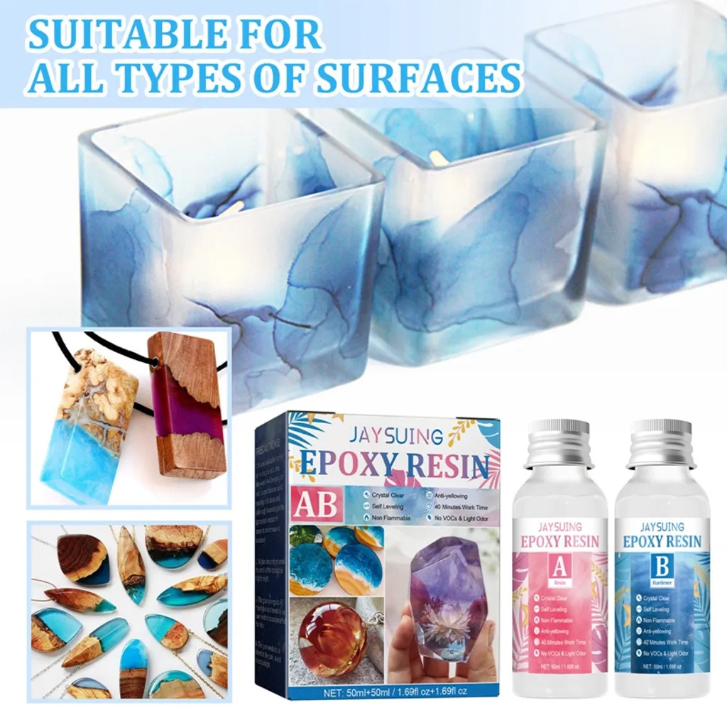 Epoxidharz Epoxy Gießharz Set Enthalten Rührstäbchen,Einweghandschuhe,Messbecher,50ml Epoxidharz+50ml Hartkleber,DIY Schmuckherstellung