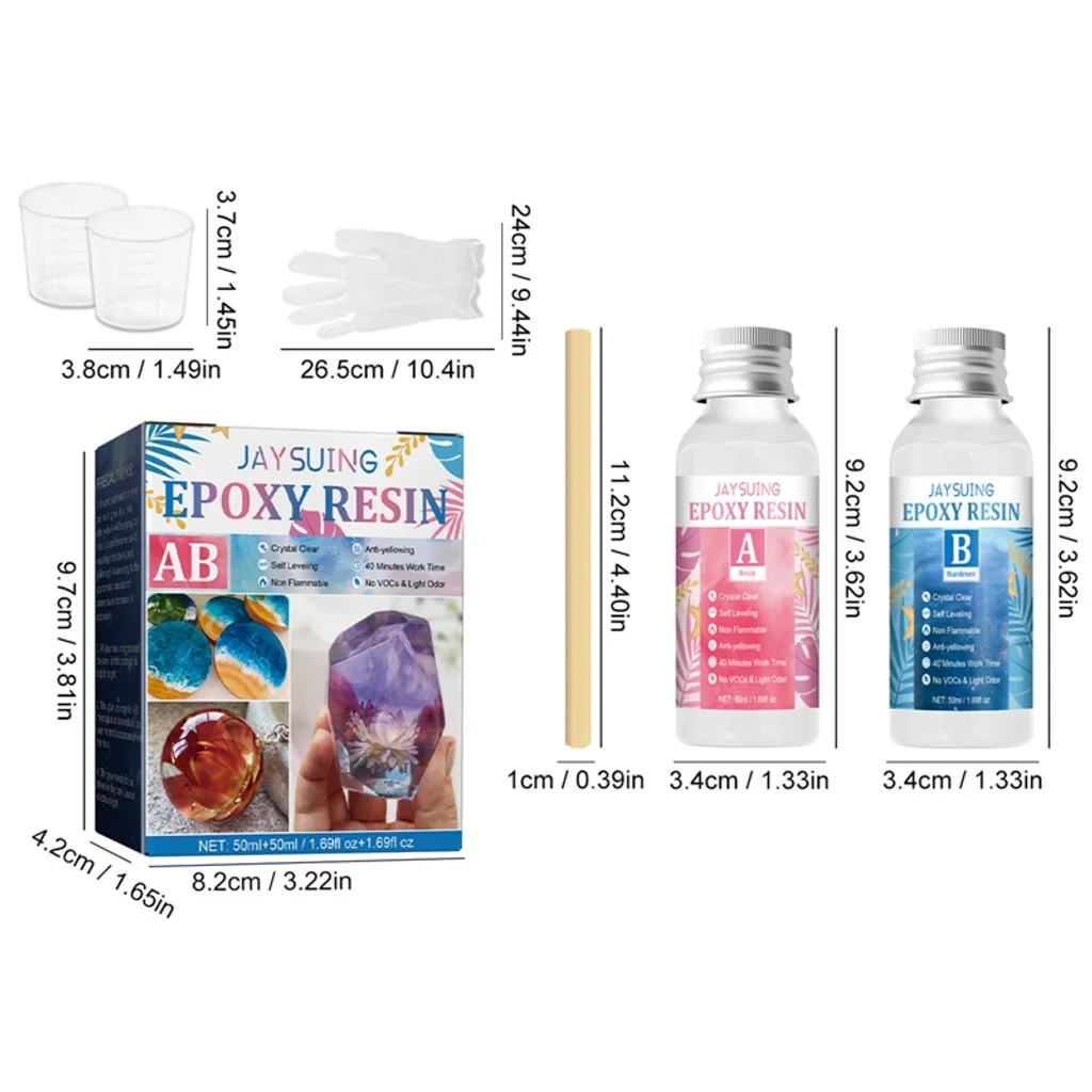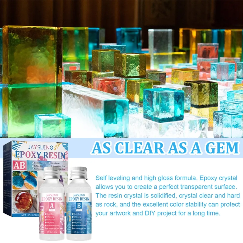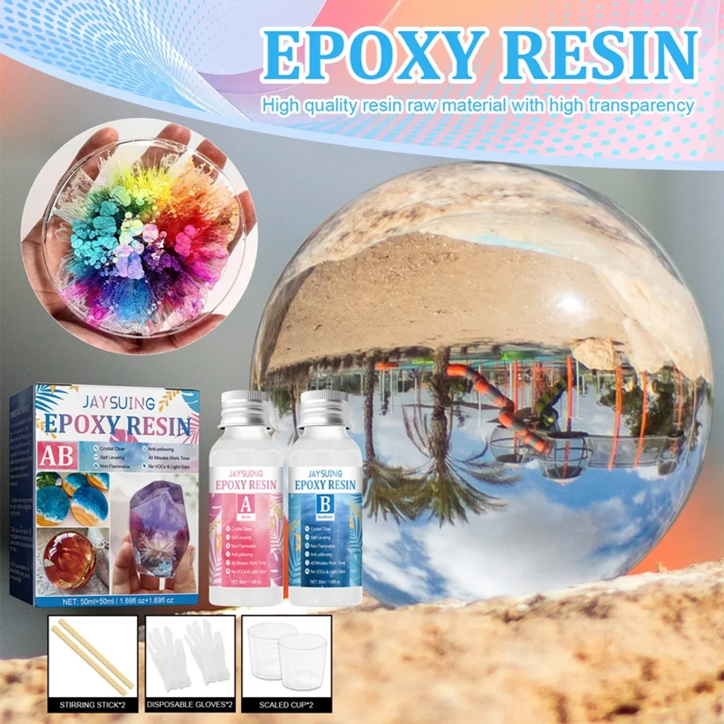 Epoxidharz Klares Gießharz Set,Kristall-Epoxidharz Kit Ab Kleber Hartkleber Heimwerkerbedarf Kunstgussharzformen 50ml+50ml
