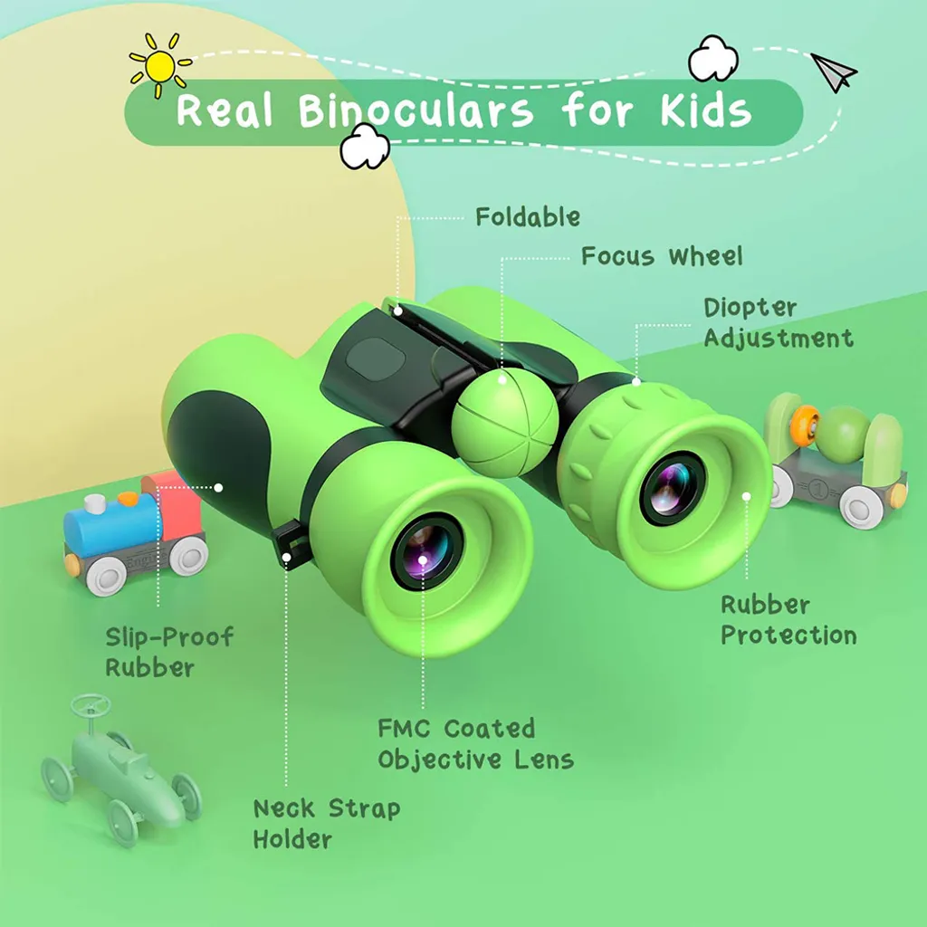 Fernglas Für Kinder, Ideales Geschenk, Spielzeug, 8 X 21, Hohe Auflösung, Echte Optik, Kompaktes Kinder-Fernglas, Stoßfest, Mini-Teleskop Für 3–12 Jahre, Jungen, Mädchen, Kinder, Vogelbeobachtung, Outdoor-Spiele,Green