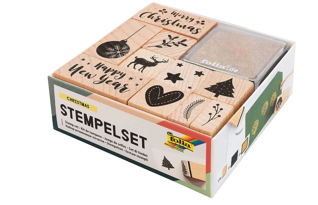 Folia Motivstempel-Set „Christmas“ Aus Holz 12-teilig