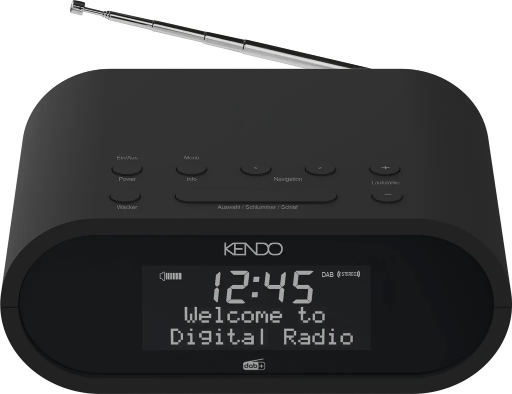 KENDO DAB Clock 21EX Schwarz Radiowecker (DAB+, UKW, Wecker, Ladestation, Sleeptimer)