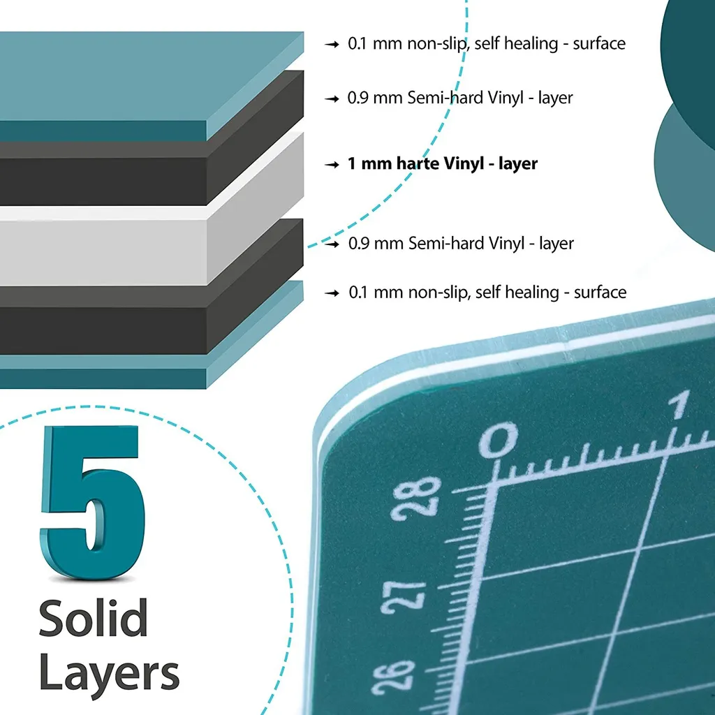 La Manuli Schneidematte Selbstheilend A3 45×30 Cm 5 SCHICHTEN, Beidseitig Nutzbar | Gut Als Schreibtisch Unterlage, Nähen Zubehör, Malunterlage Für Kinder, Basteln, DIY | Self Healing Cutting Mat (A3)