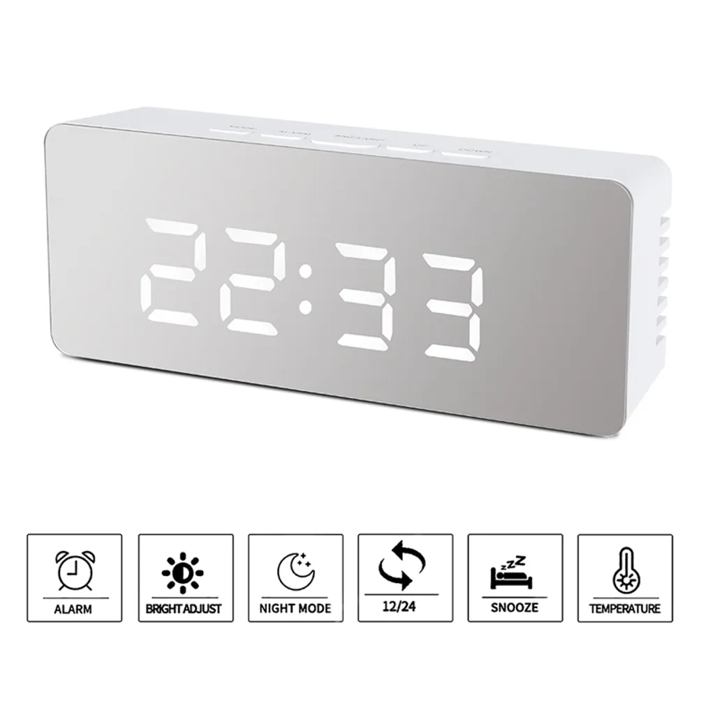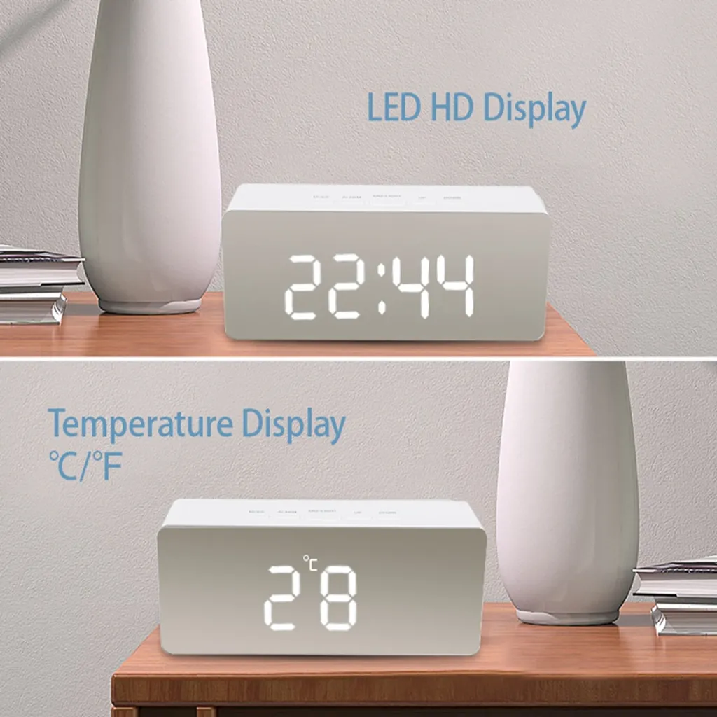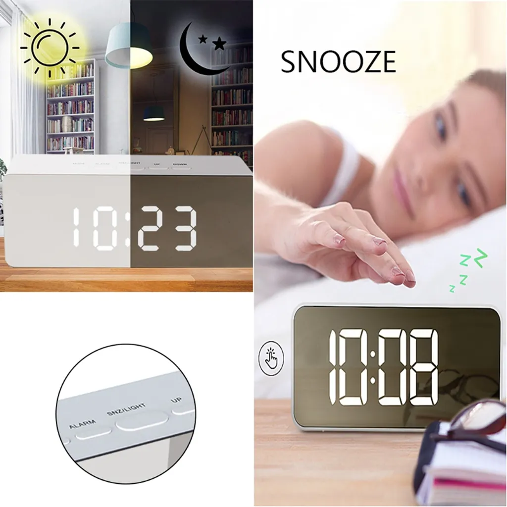 LED Spiegel Digitaler Wecker, Desktop USB Elektronisches Thermometer Am Bett Digitaler Wecker
