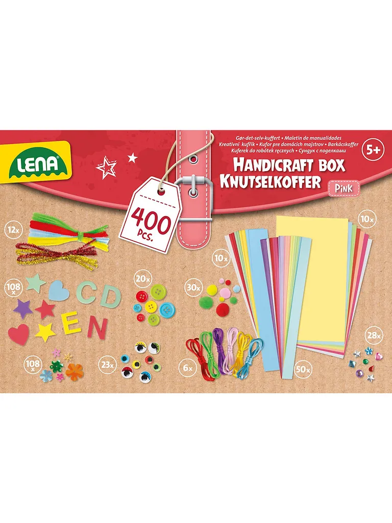 LENA Spielwaren Bastelkoffer, Pink, Faltschachtel Materialsets Basteln & Kreativitätsspielzeug LENA® Bastelkoffer, Pink, Papier-Bastelsets, Textiles Gestalten