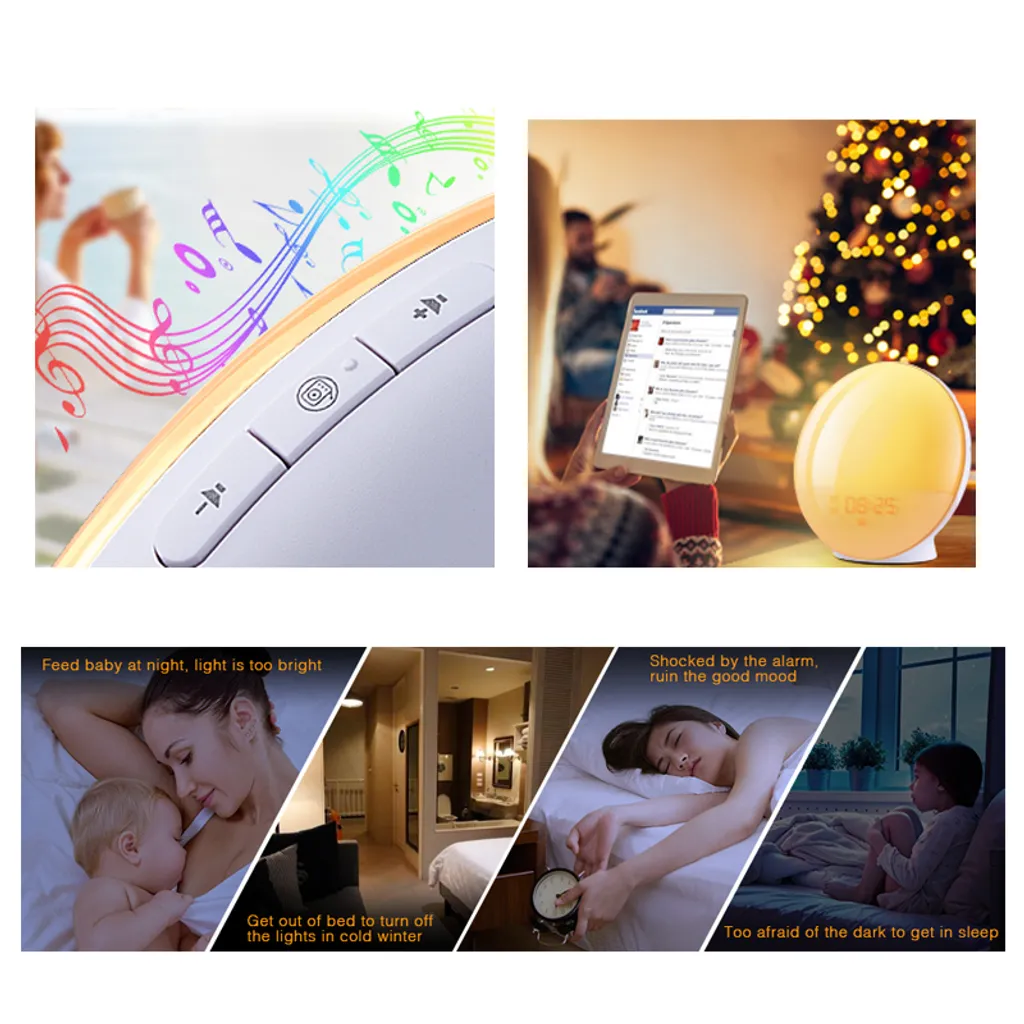 Lichtwecker LED Wake Up Light, Wecker Mit Sonnenaufgangssimulation, Tageslichtwecker FM Radio Wecker Mit Licht 7 Farben, 7 Wecktöne Wecker Kinder Alarm Clock Digital Uhr Nachtlicht Nachttischlampe [Energieklasse A++]