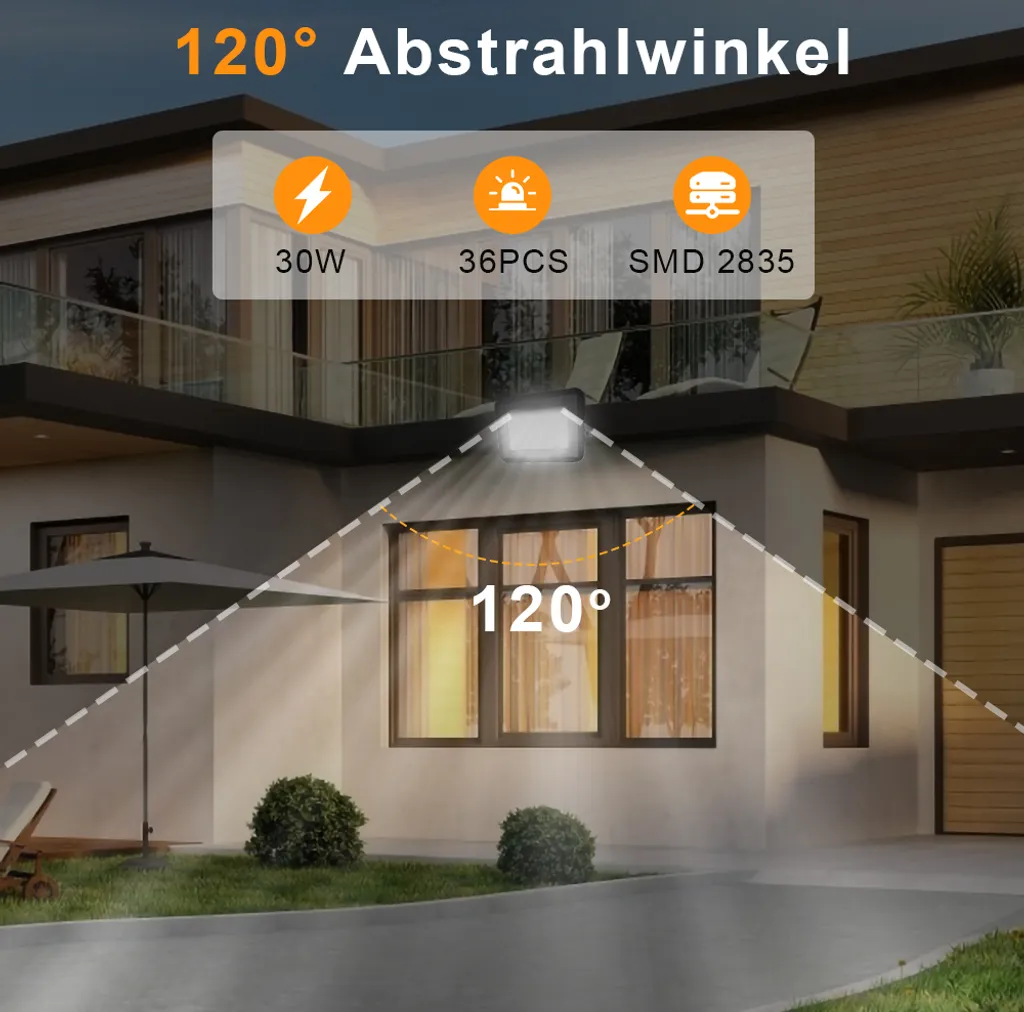 Lospitch 2X LED Fluter Flutlicht Strahler 30W Scheinwerfer Baustrahler Außen Lampe IP65 Warmweiß