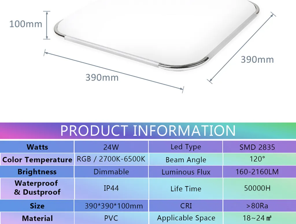 Lospitch Led Deckenleuchte Deckenleuchten RGB Dimmbar Deckenlampe Mit Fernbedienung Lampe Fuer Wohnzimmer Kinderzimmer Schlafzimmer Flur Kueche Buero Modern IP44 24W