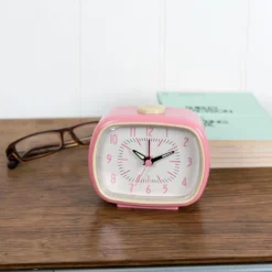 LS-LebenStil Vintage Reisewecker Rosa 11x9cm Analog Nostalgie Quarz-Wecker Tischuhr