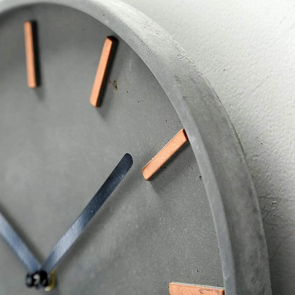 LS-LebenStil Vintage Wanduhr Beton Grau Kupfer 28cm Rund Schwarze Zeiger Quarzuhr Küchenuhr