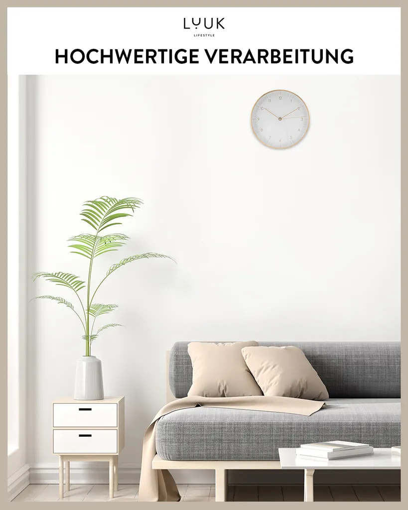 LUUK LIFESTYLE Große Quarz-Wanduhr, Leisem, Nicht Tickendem Uhrwerk, Nordisches Design, Innendekoration Für Wohnzimmer, Küche, Schlafzimmer, Farbe Weiß Und Gold
