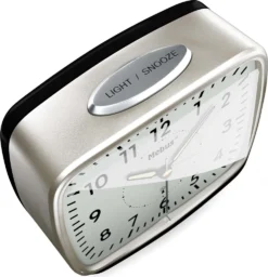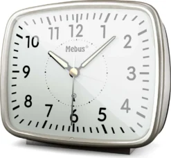 Mebus Funk-Wecker Im Retro-Design / Wecker Stellt Sich Automatisch Auf Sommer Und Winter-Zeit Ein, Designklassiker / Farbe: Silbergrau / Modell: 25362