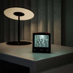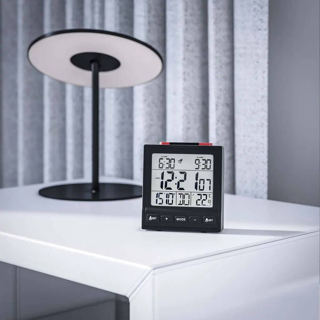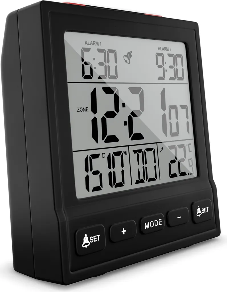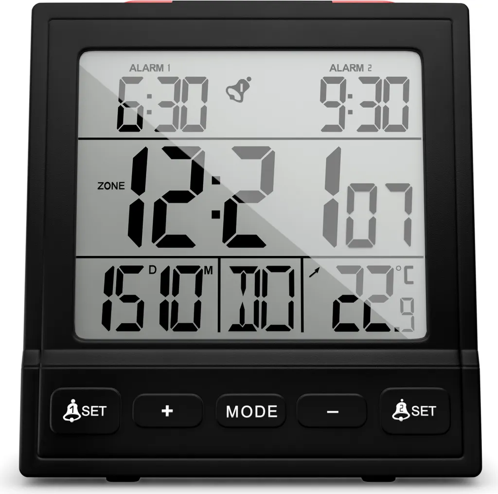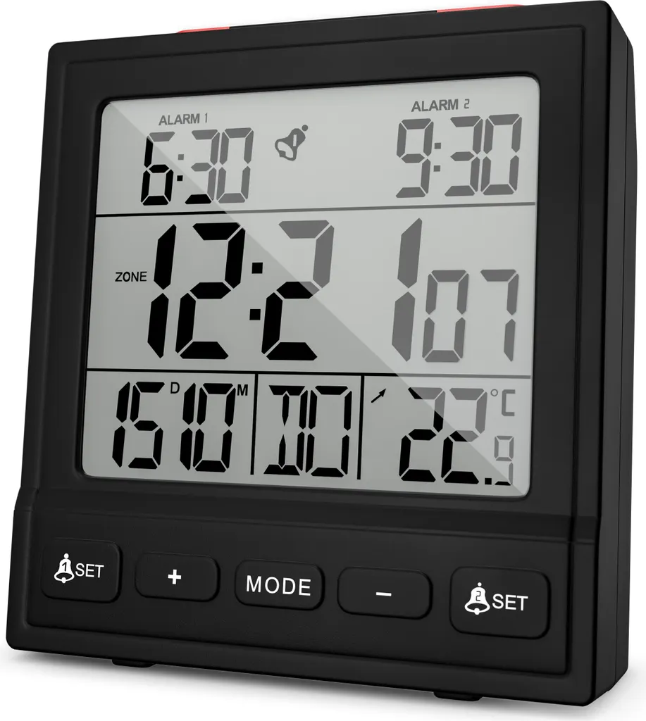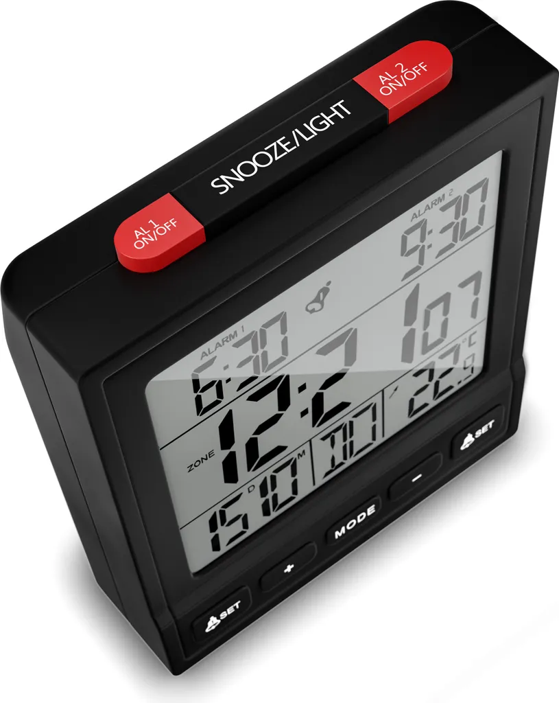 Mebus Funk-Wecker Mit Thermometer / Funk-Uhr / Automatische Einstellung Von Sommer-und Winterzeit / Zwei Weckzeiten / Farbe: Schwarz / Modell: 25581