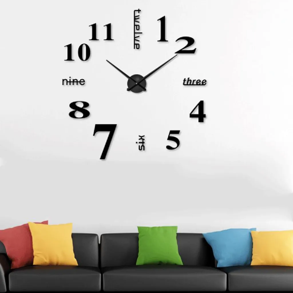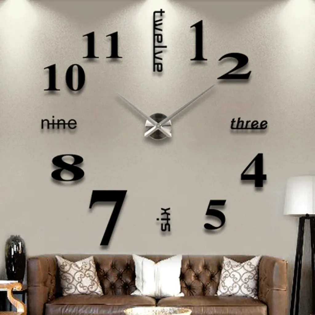 Moderne Mute DIY Große Wanduhr 3D Aufkleber Home Office Decor Geschenk (Silber)