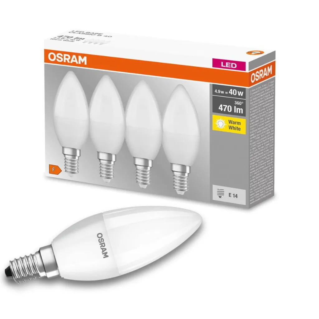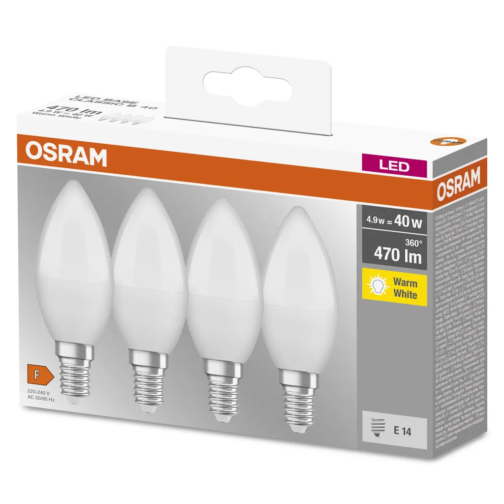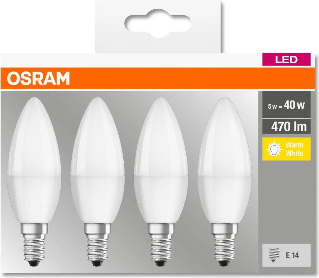 Osram LED BASE B40 Kerze E14 5,7W Warmweiß 4er