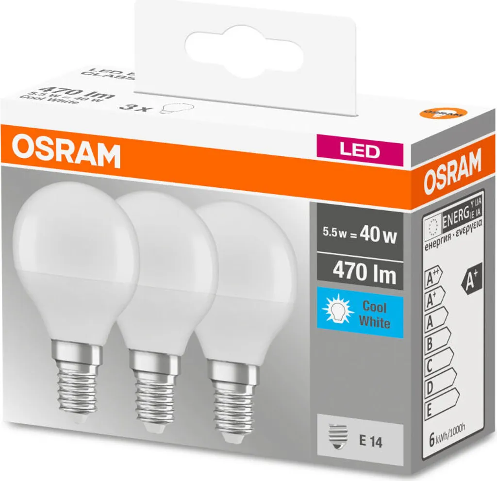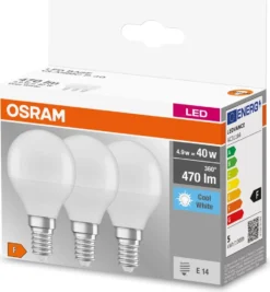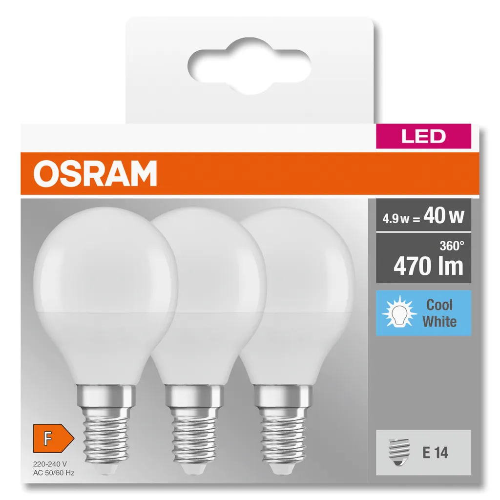 OSRAM LED BASE Classic P40, Matte Filament LED-Lampen Aus Glas Für E14 Sockel, Kerzenform, Kaltweiß (4000K), 470 Lumen, Ersatz Für Herkömmliche 40W-Glühbirnen, 3er-Box
