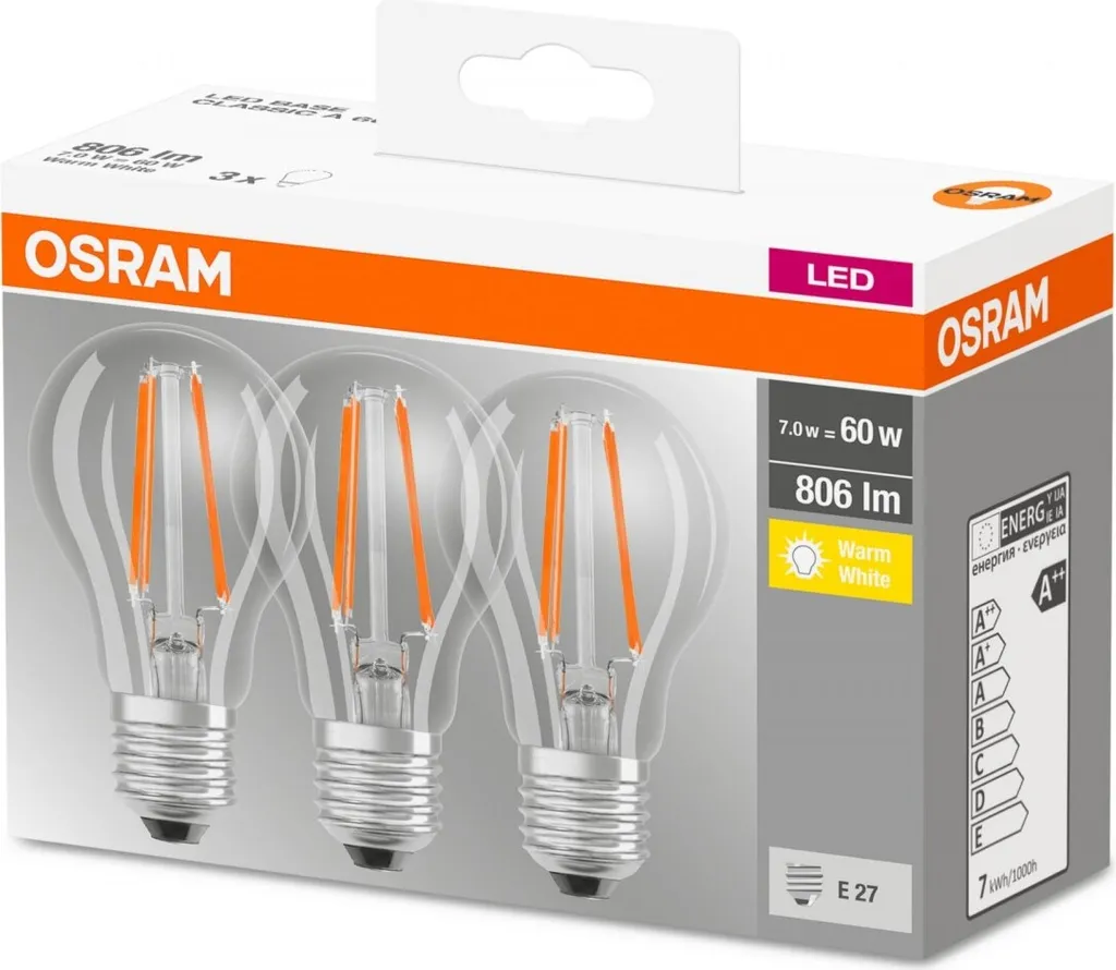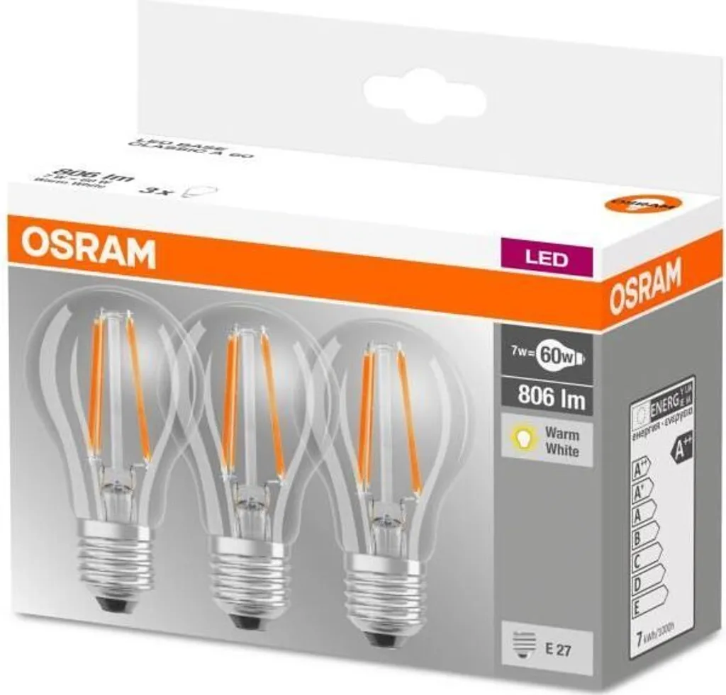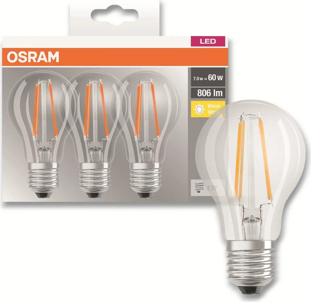 OSRAM LED Base Filament CLA60 7W/827 E27 | 7W/827 220-240V KLAR 806LM E27 M3