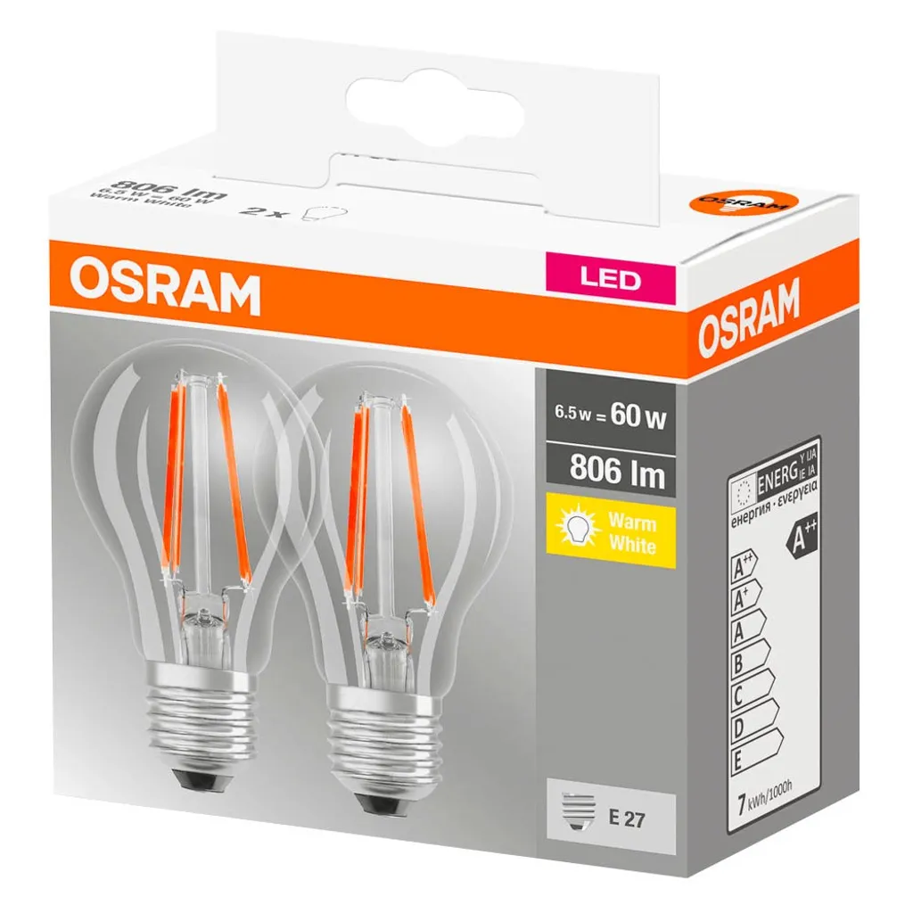 OSRAM LED Base Filament Klar CLA60 E27 | 7W/827 806LM E27 M2 Vollglas