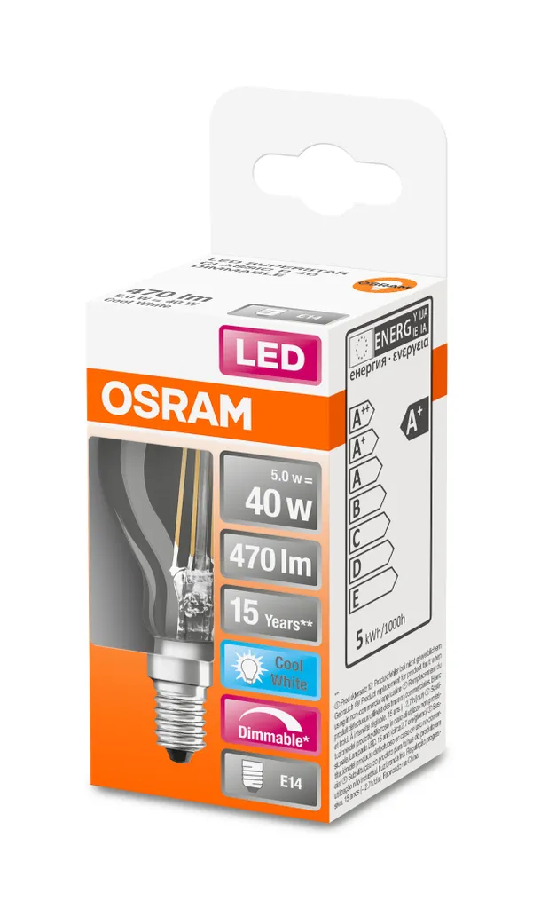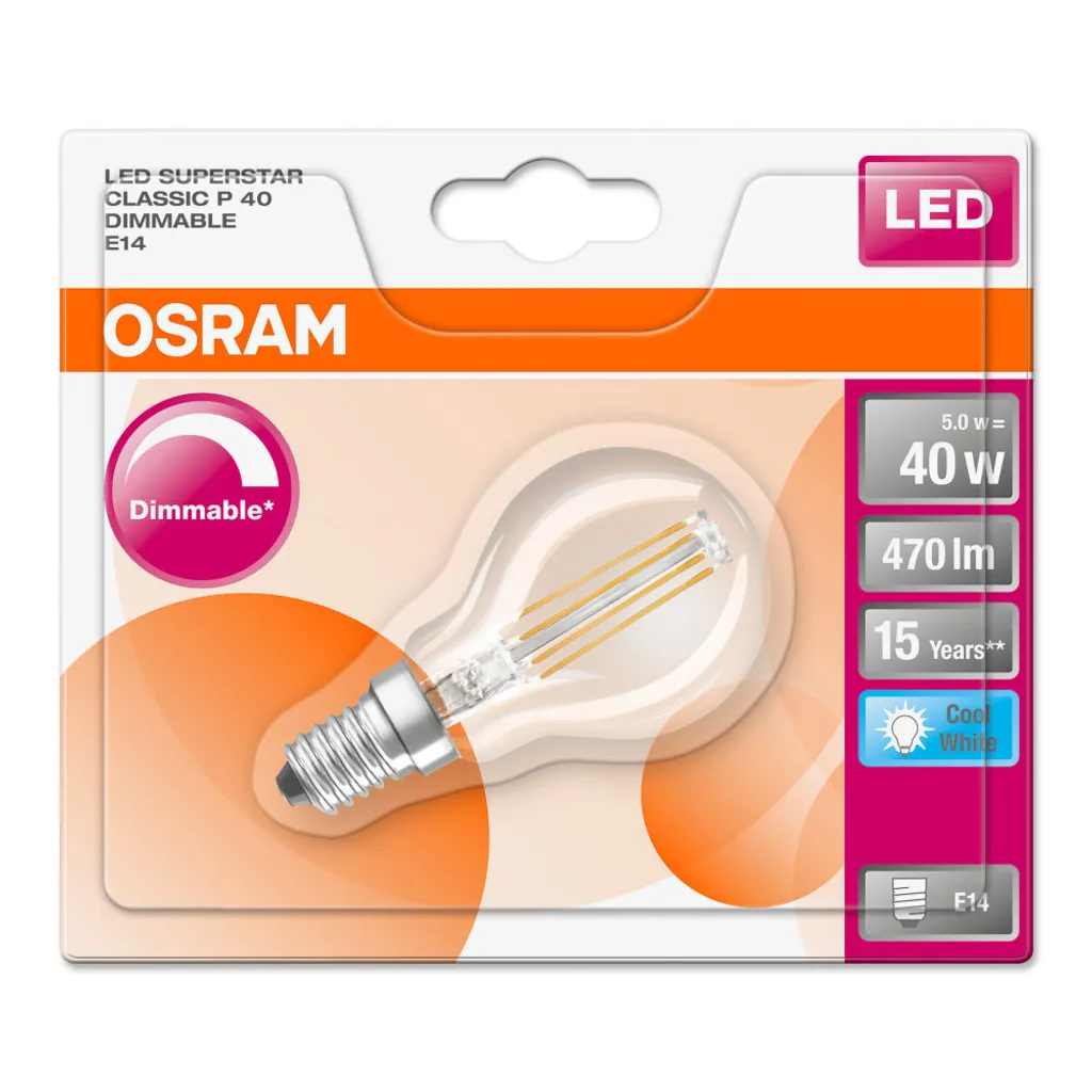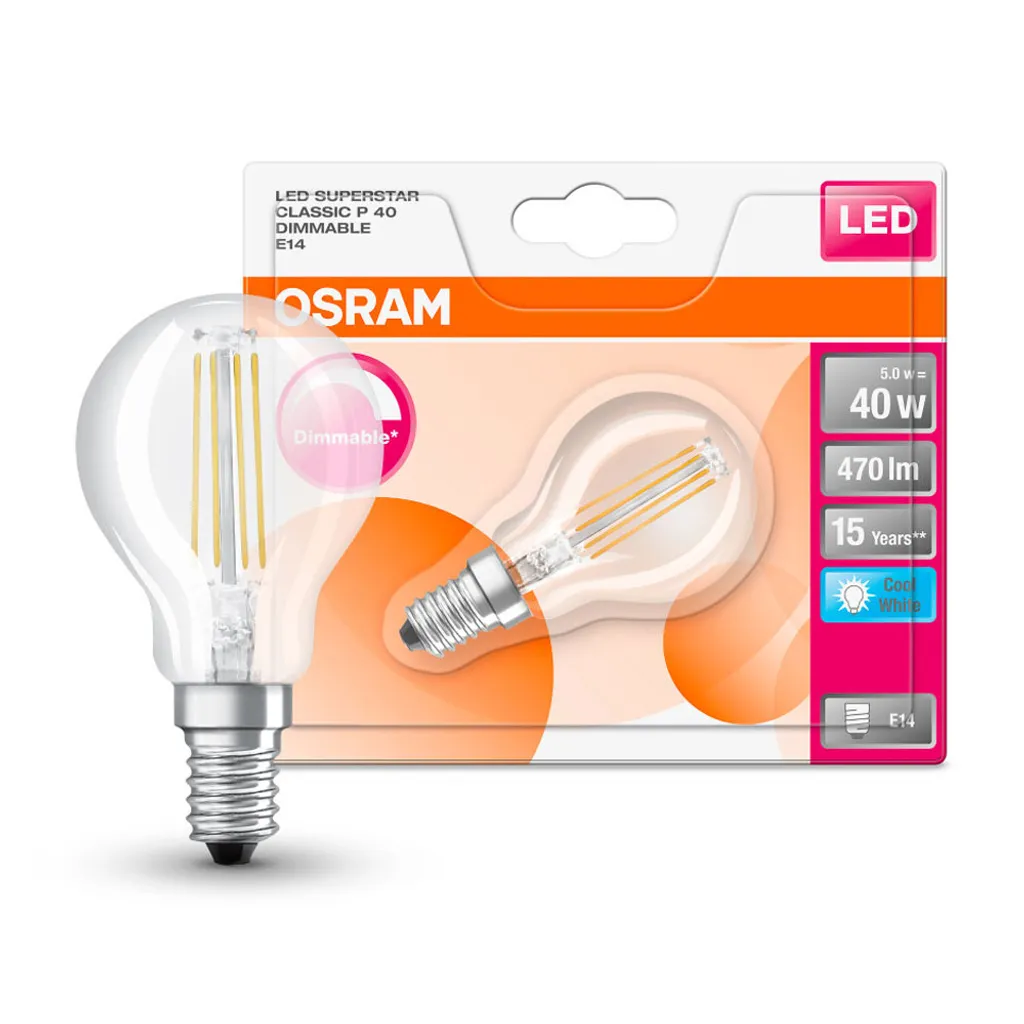 Osram LED Filament Leuchtmittel Tropfen 5W = 40W E14 Klar 470lm Neutralweiß 4000K DIMMBAR