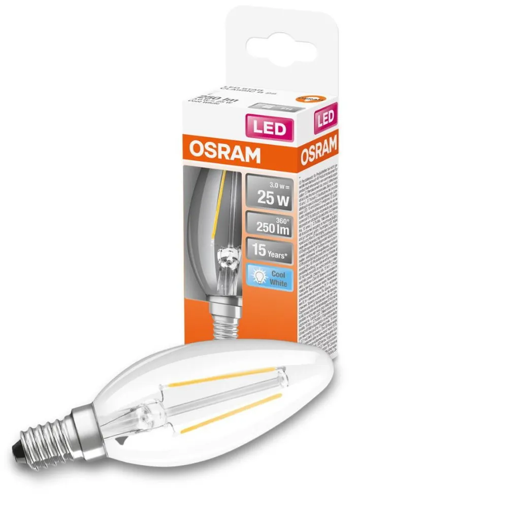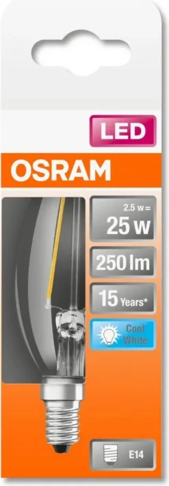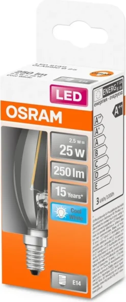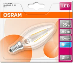 Osram LED Kerzenlampe Star Classic B 25 E14 2,5W Kaltweiß, Klar