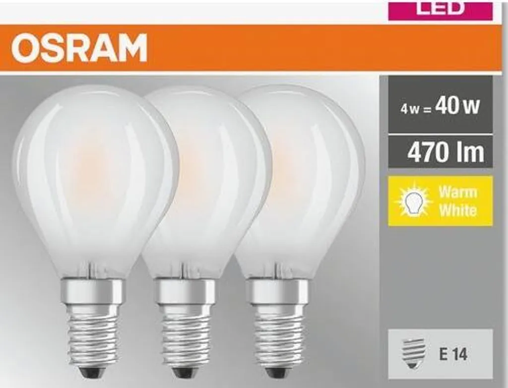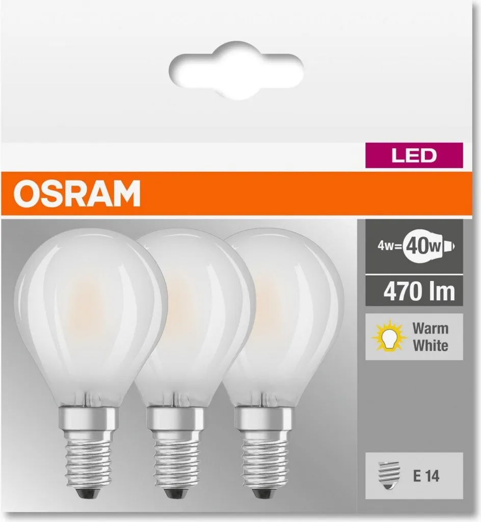 Osram LED-Lampe BASE P, E14, EEK: E, 4W, 470 Lm, 2700 K, 3 Stück